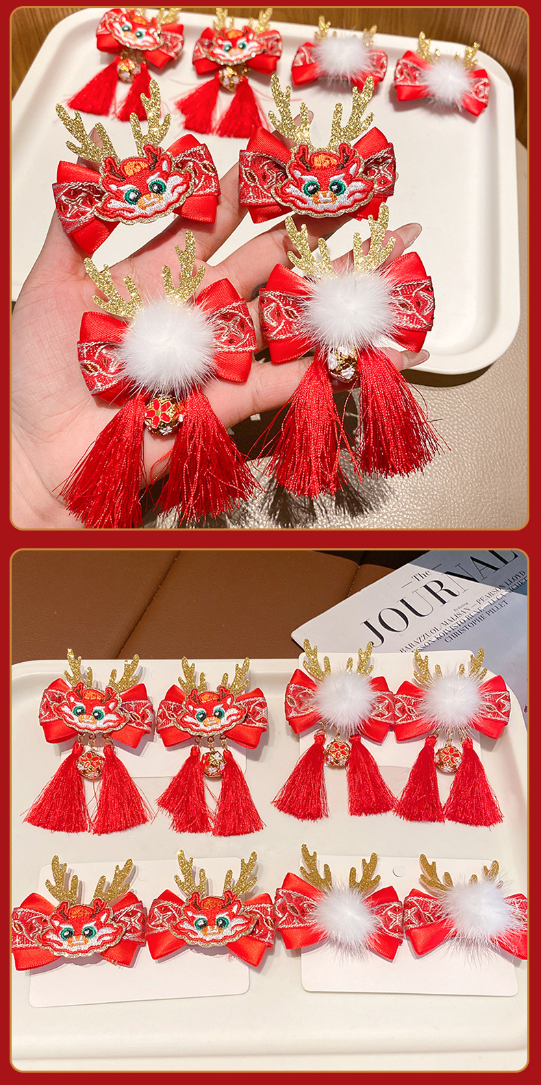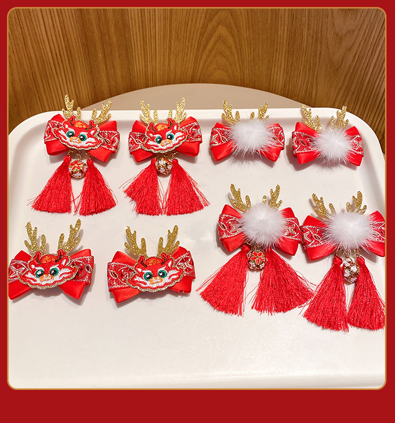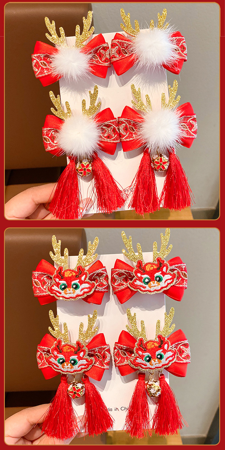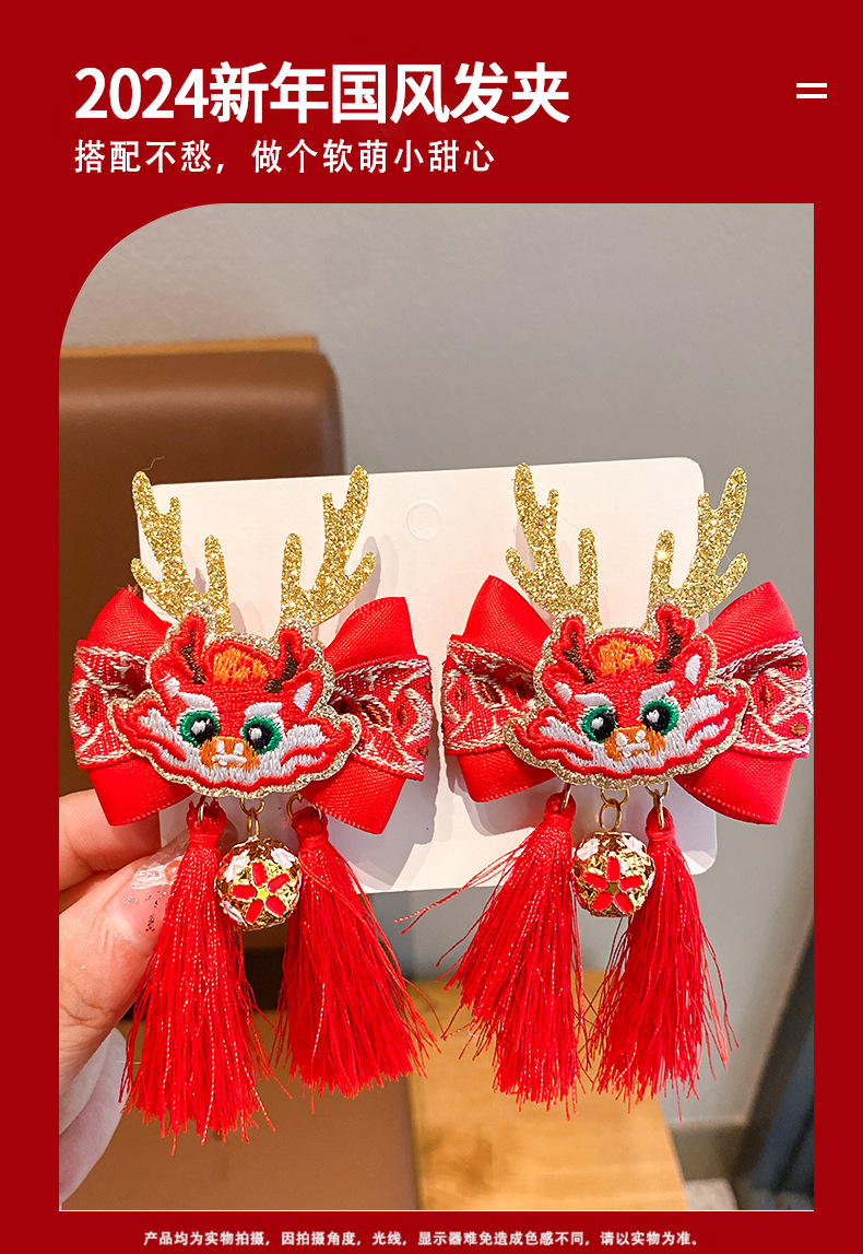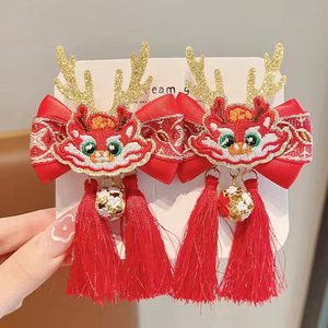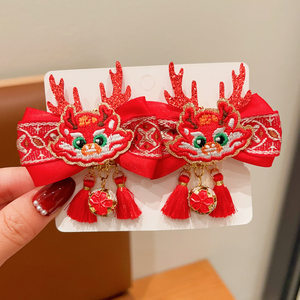 어린이 설날 골동품 한푸 헤어핀 헤드웨어 중국 스타일 소녀 해피 이어 드래곤 레드 헤어 카드 소녀의 술 헤어 액세서리