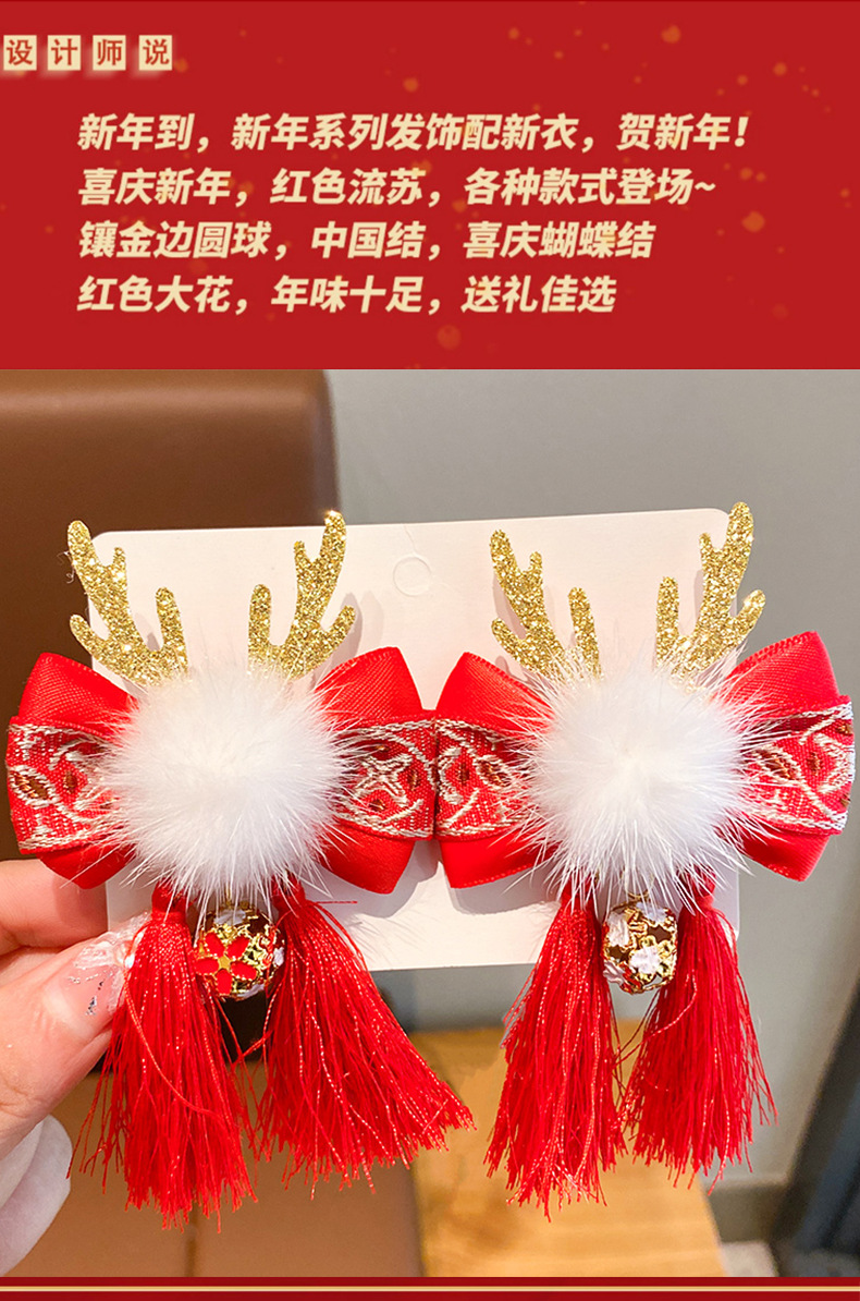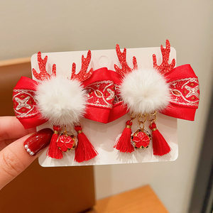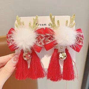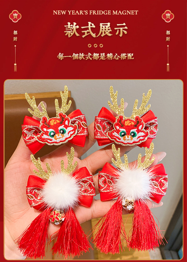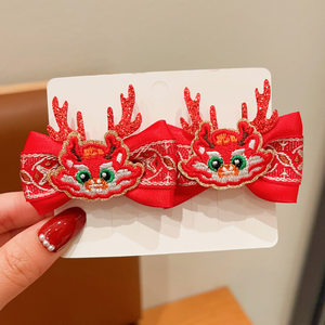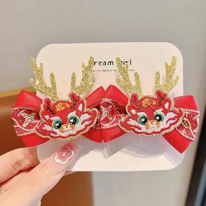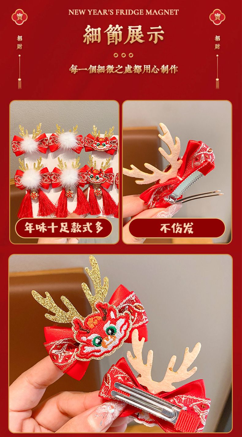 어린이 설날 골동품 한푸 헤어핀 헤드웨어 중국 스타일 소녀 해피 이어 드래곤 레드 헤어 카드 소녀의 술 헤어 액세서리