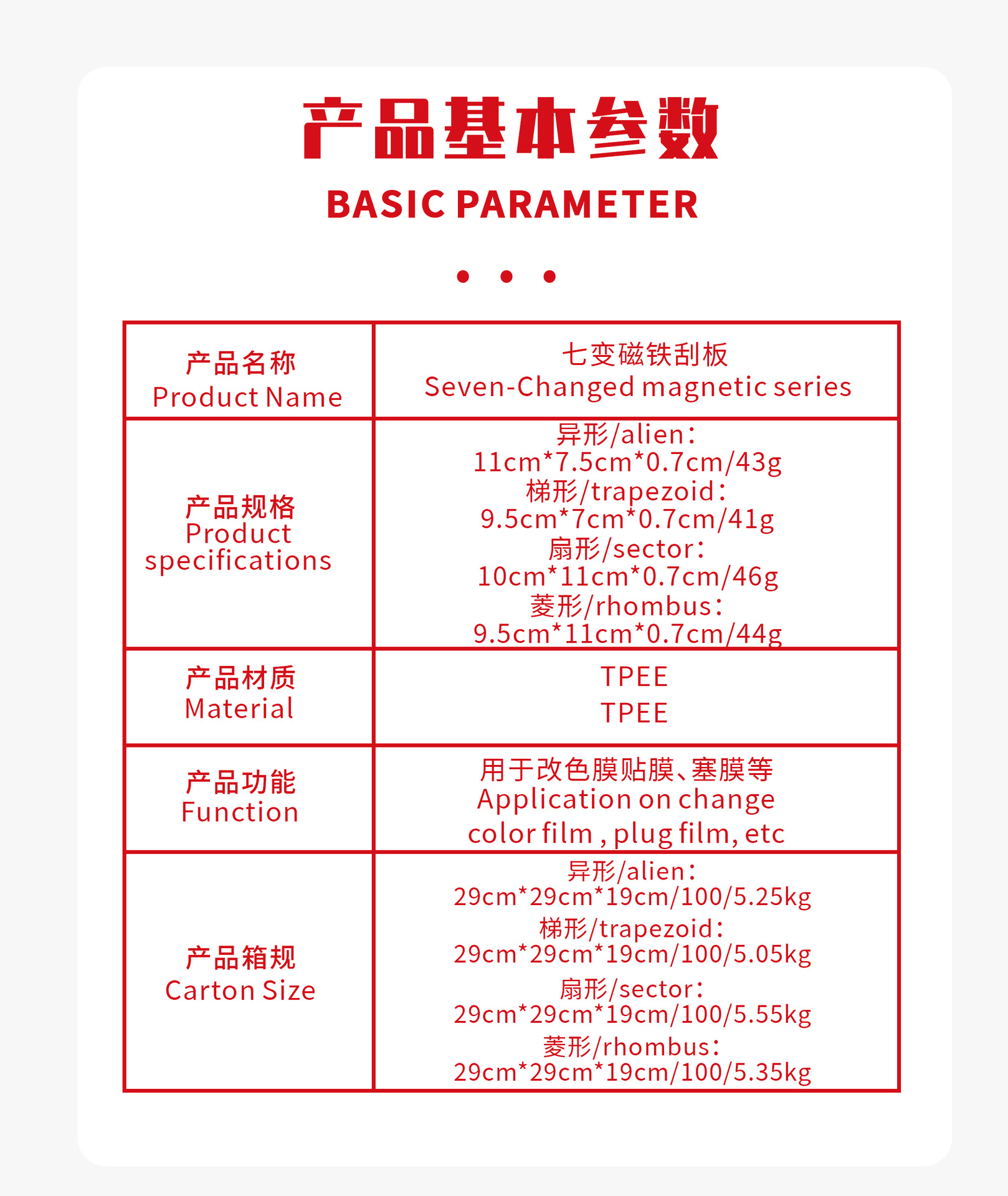기리 자동차 필름 도구는 자유롭게 조립할 수 있으며, 스크레이퍼는 탈부착 가능하며, 다양한 경도의 색상 변경 필름을 자석으로 부착할 수 있는 디자인입니다.