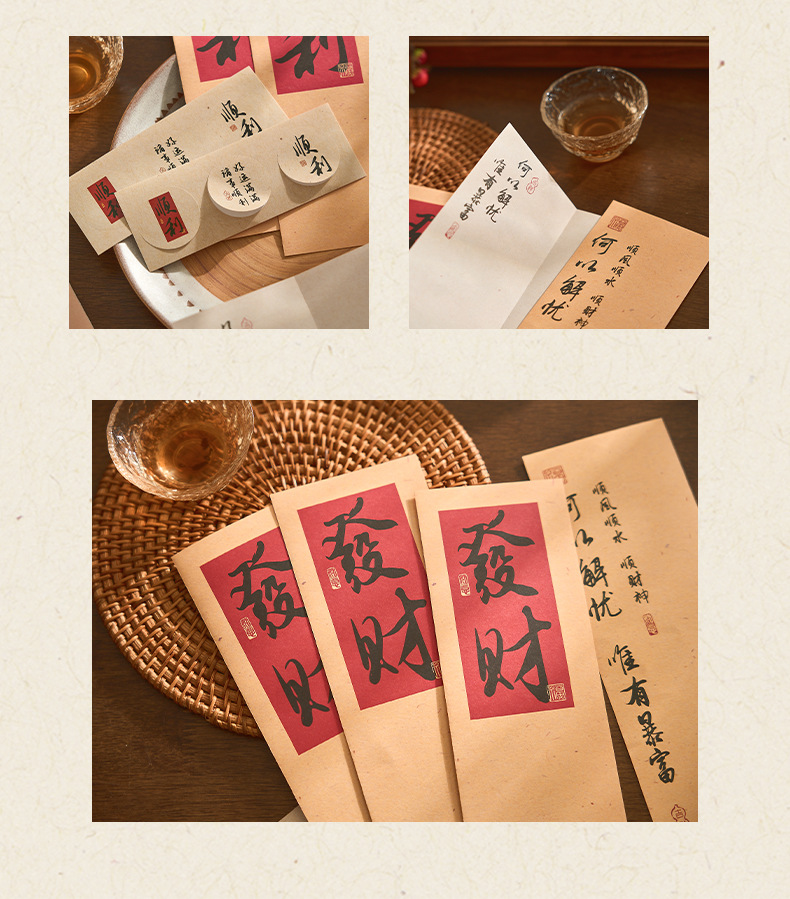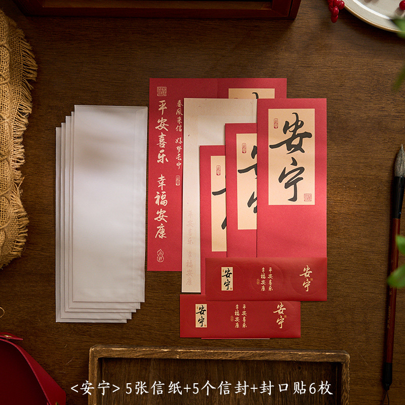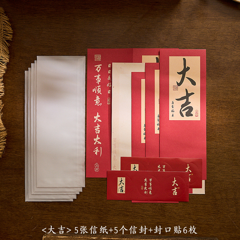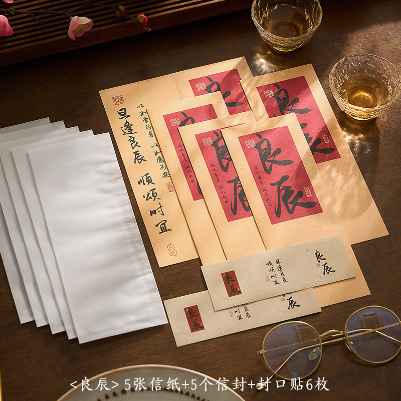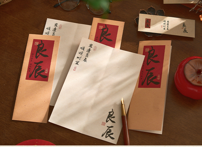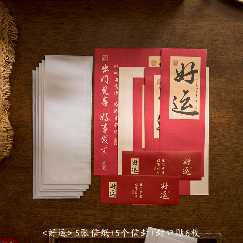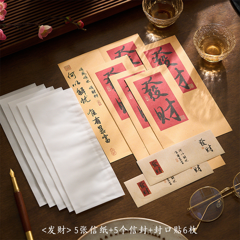 자오 모 봉투 레터 헤드 세트 푸두 순이 시리즈 중국 스타일 서예 축복 텍스트 필기 메시지 레터 헤드