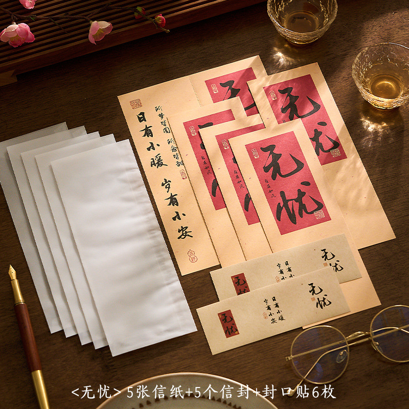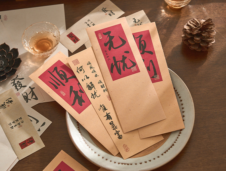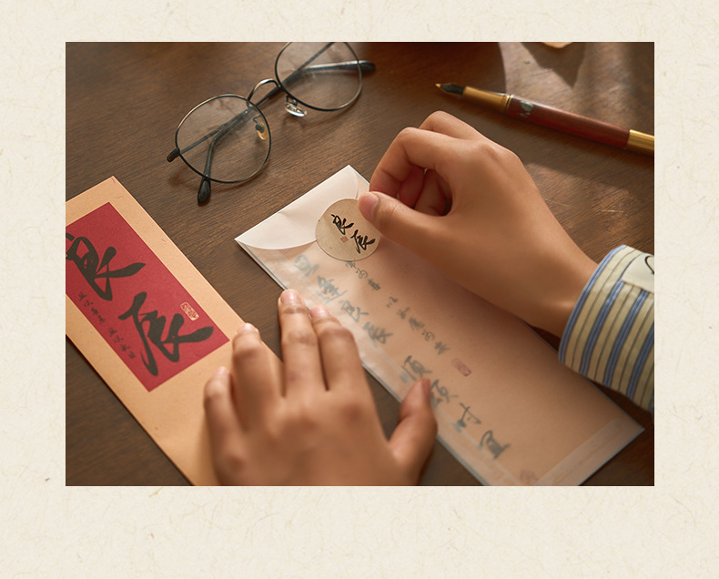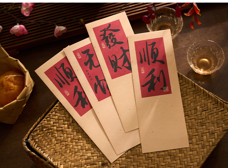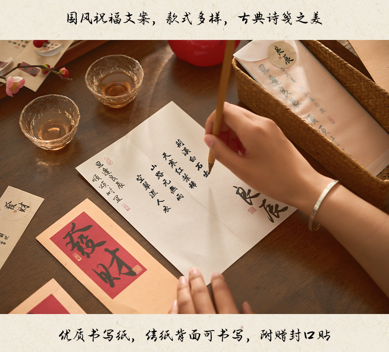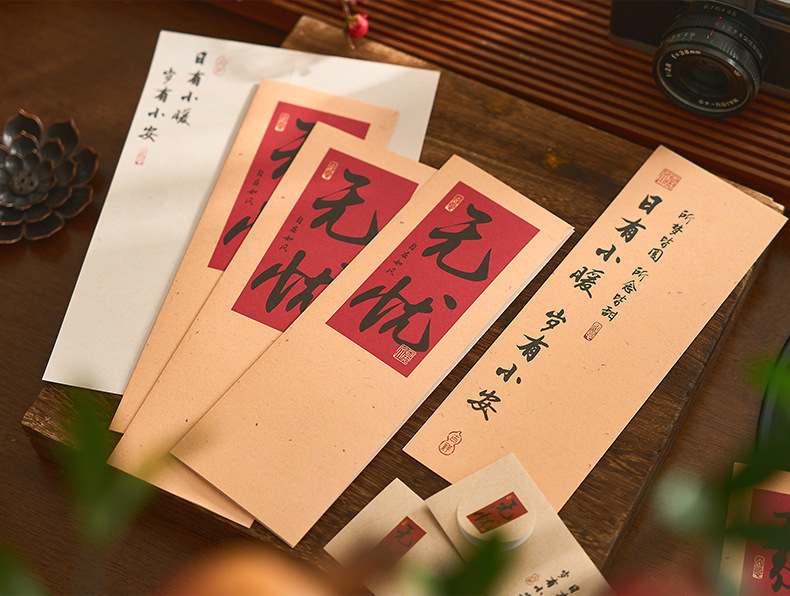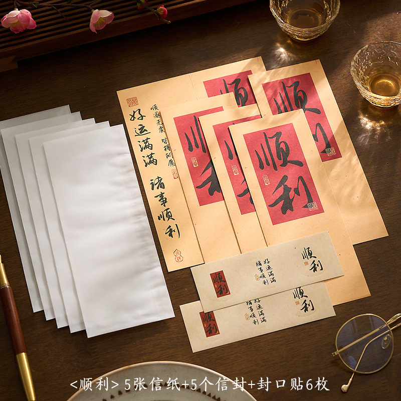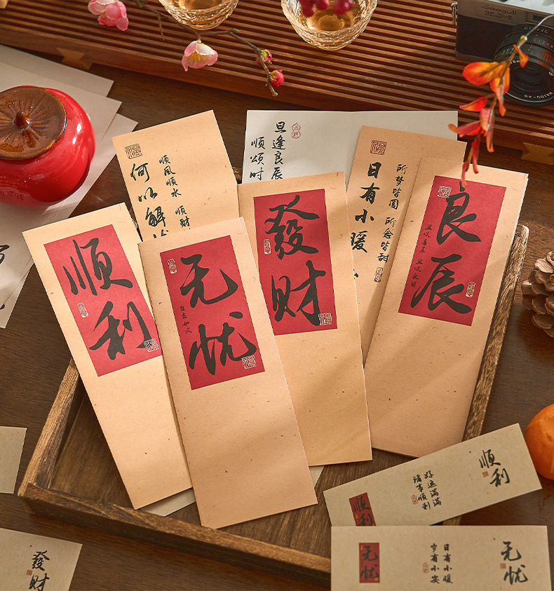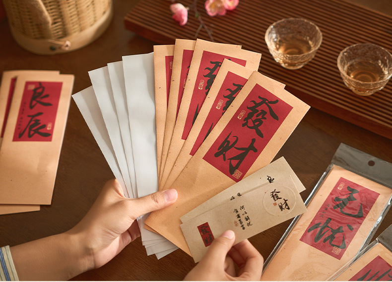 자오 모 봉투 레터 헤드 세트 푸두 순이 시리즈 중국 스타일 서예 축복 텍스트 필기 메시지 레터 헤드스토어 가기