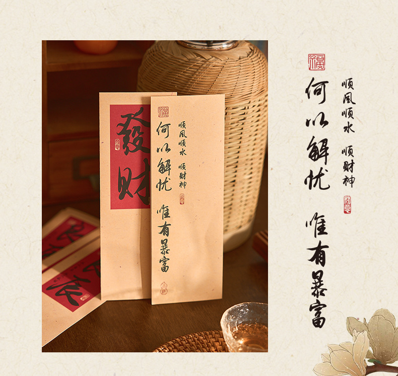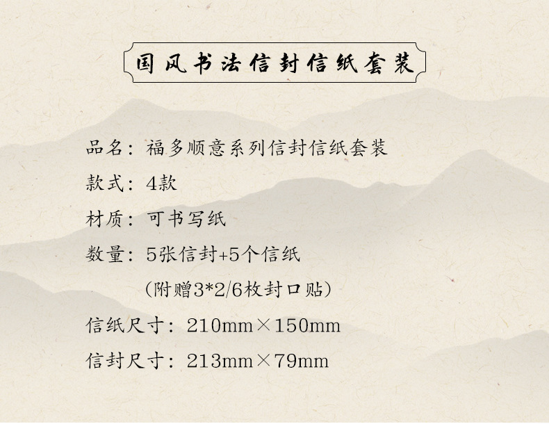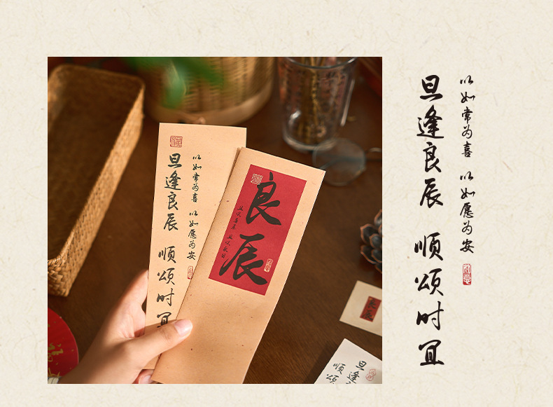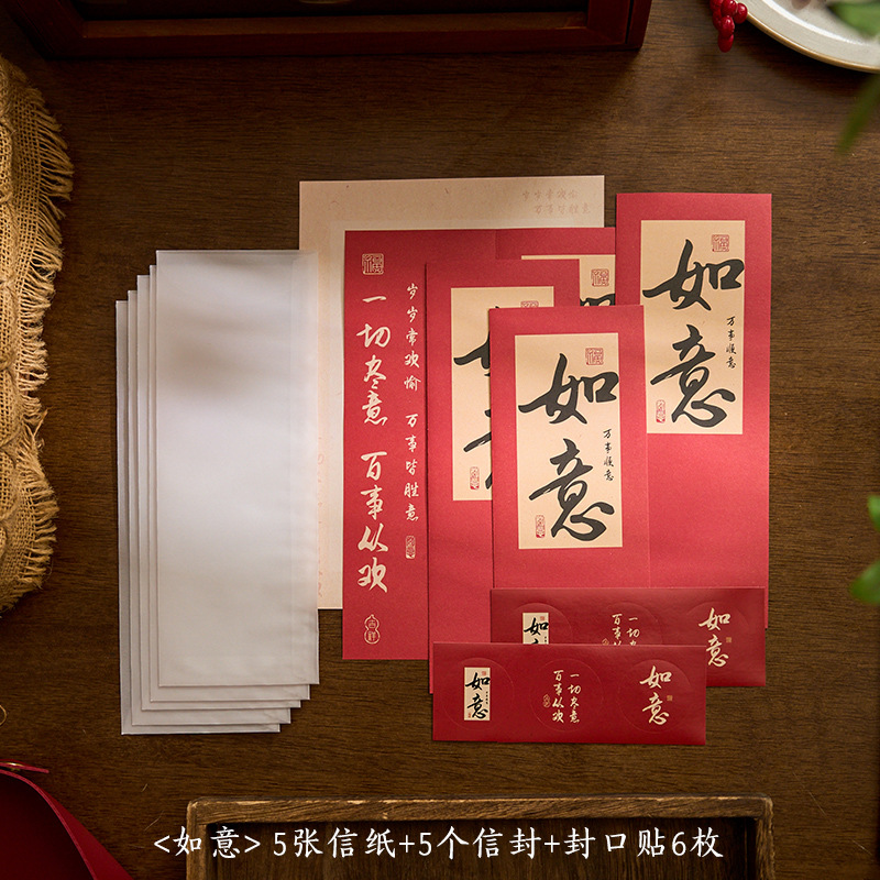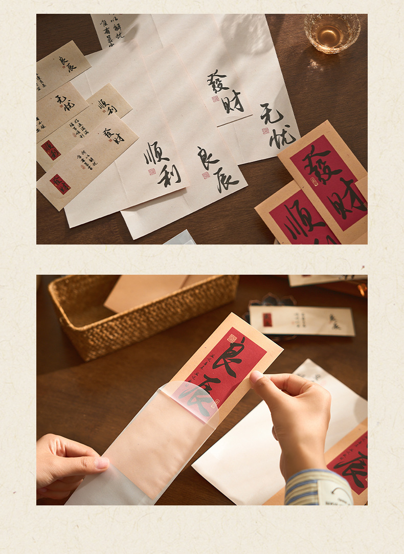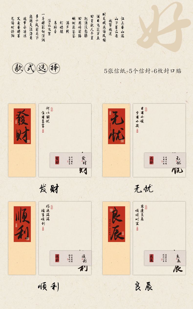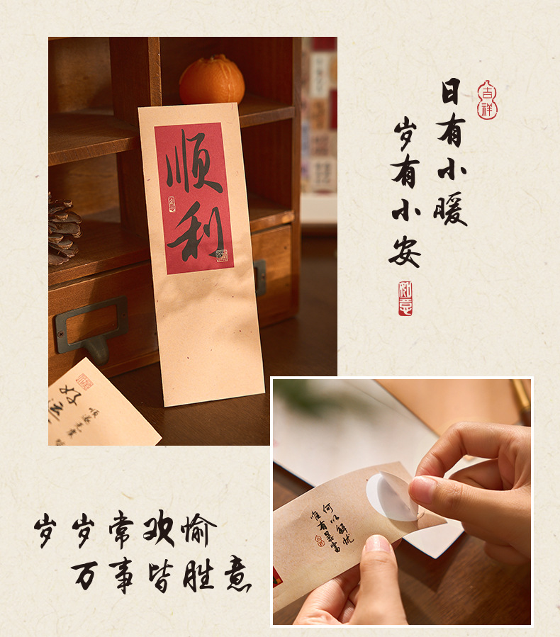 자오 모 봉투 레터 헤드 세트 푸두 순이 시리즈 중국 스타일 서예 축복 텍스트 필기 메시지 레터 헤드스토어 가기