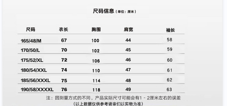 温馨提示:本店所售产品为厂家直发,发出的衣服均为白坯(无商标 无吊牌 简约包装)。