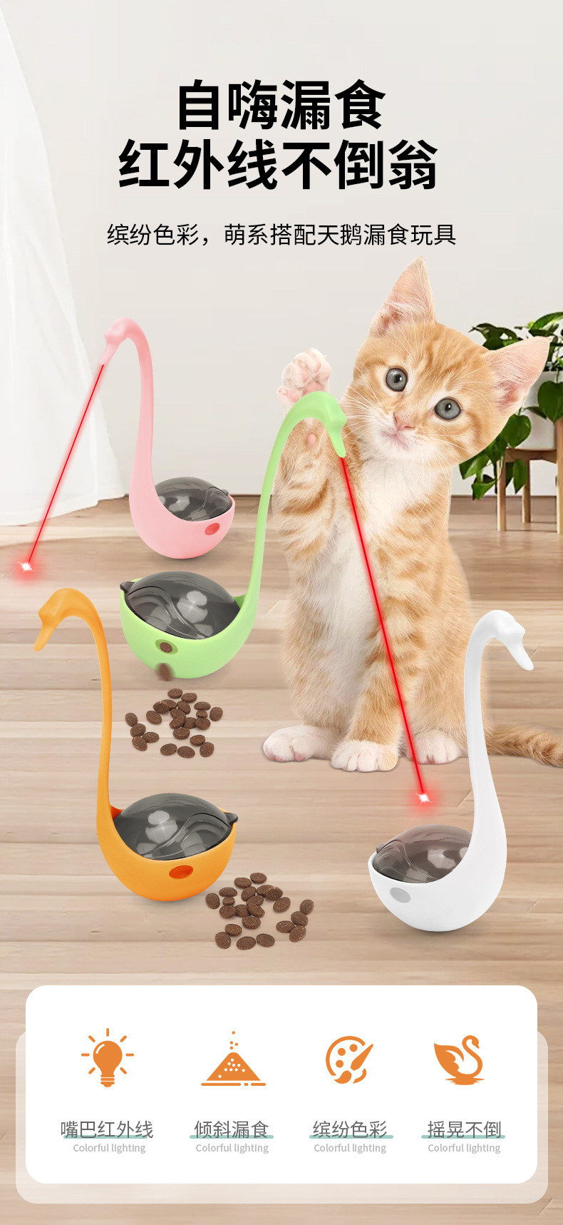 애완 동물 텀블러 적외선 장난감 백조 누설 공 재미 고양이 장난감 개 고양이 퍼즐 셀프 하이 개 장난감