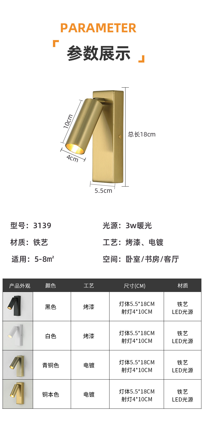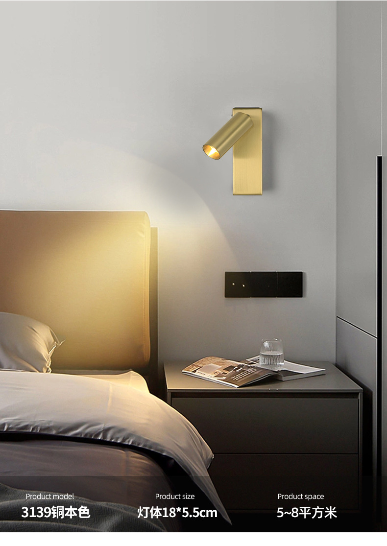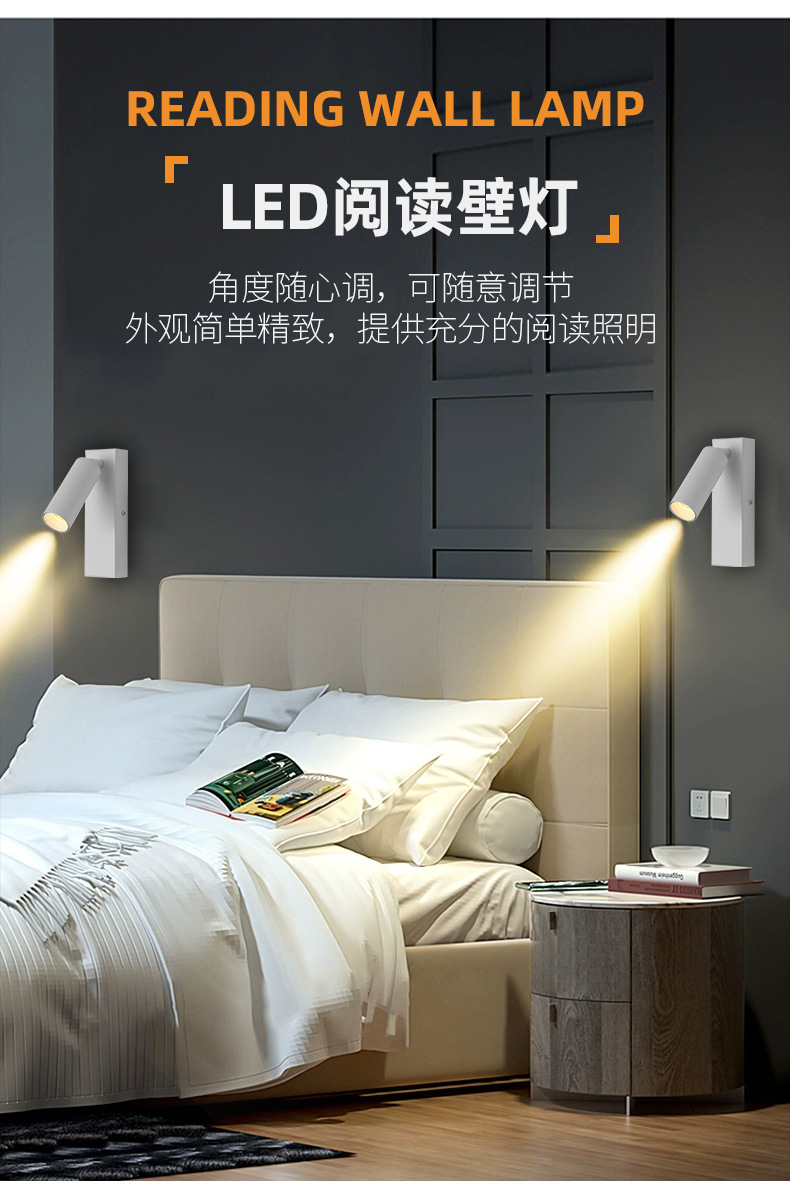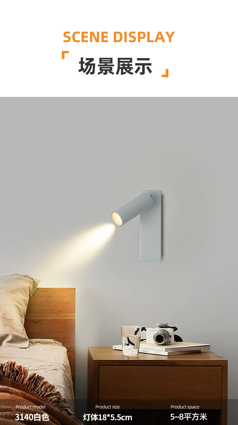 회전식 독서용 벽등, 간단한 호텔 침실용 침대등, 스위치 없는 호텔 엔지니어링 LED 조명기구 제조업체스토어 가기