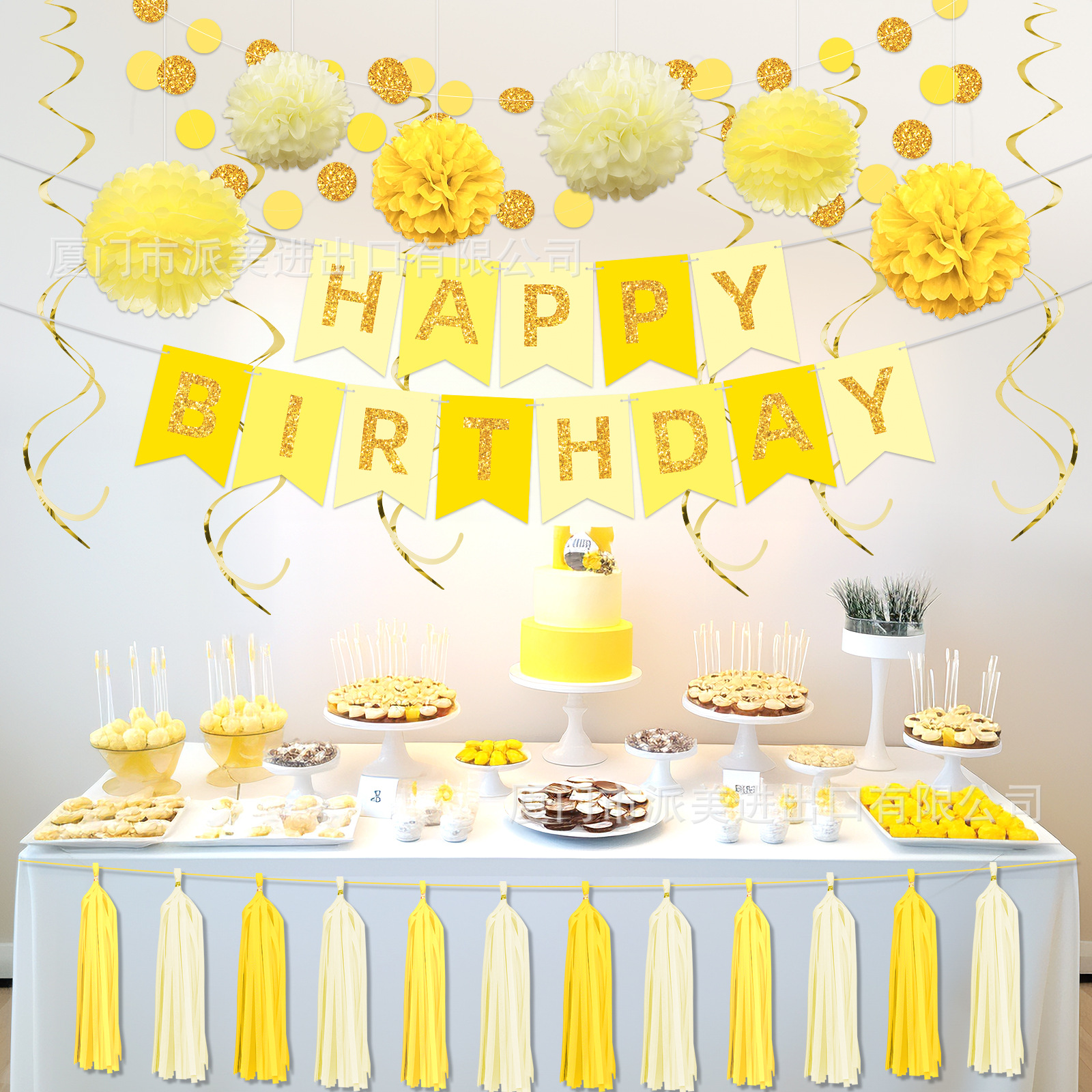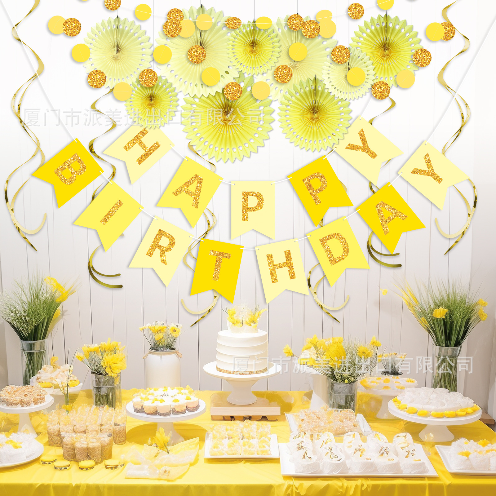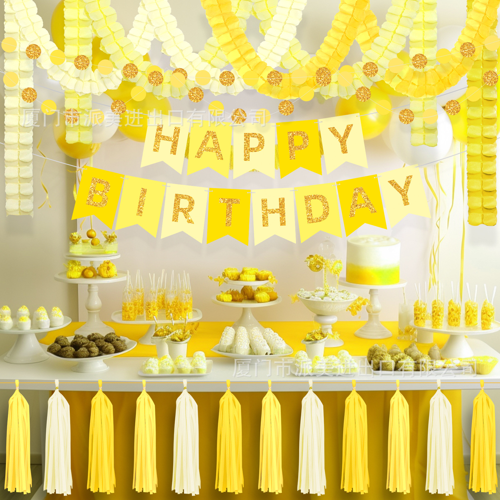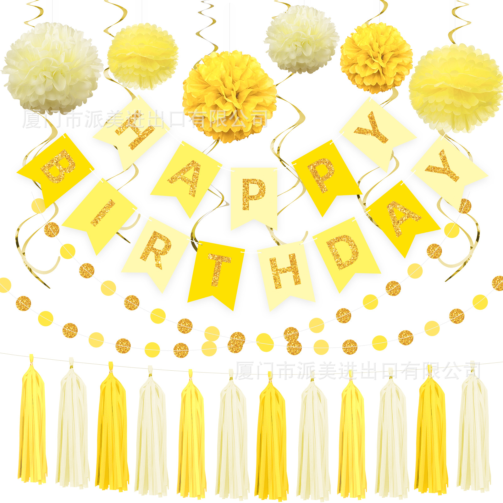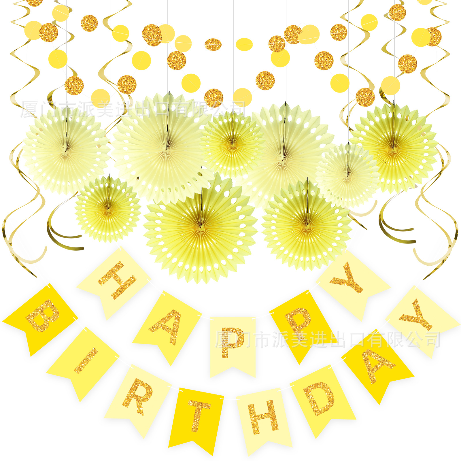 套装1包括:1条拉旗+2条纸串+1组纸花+1套流苏+6条螺旋