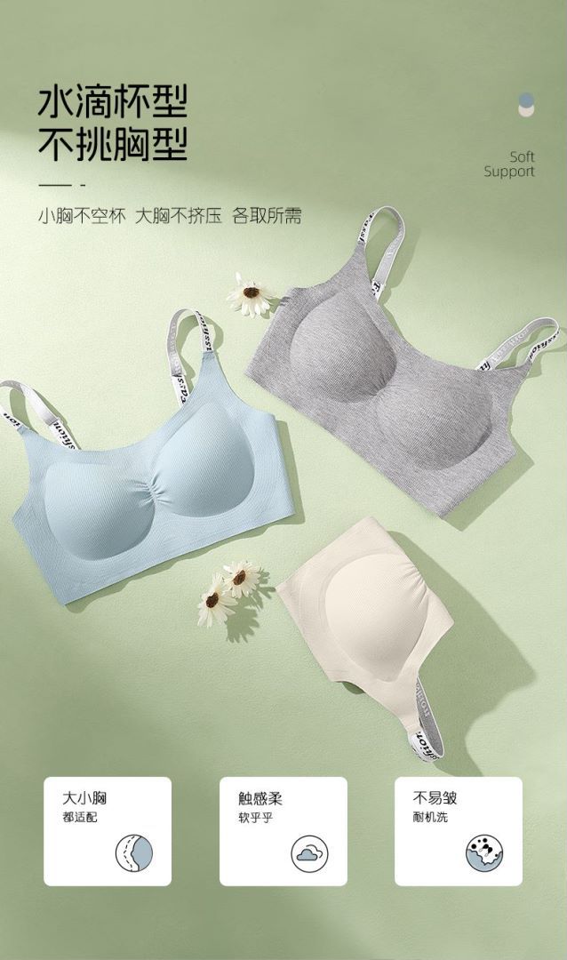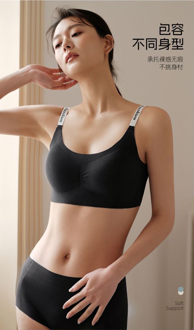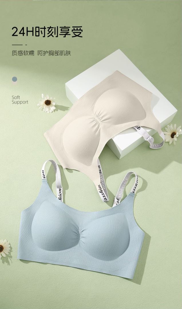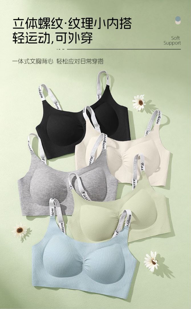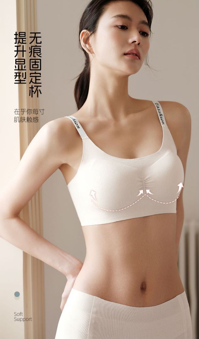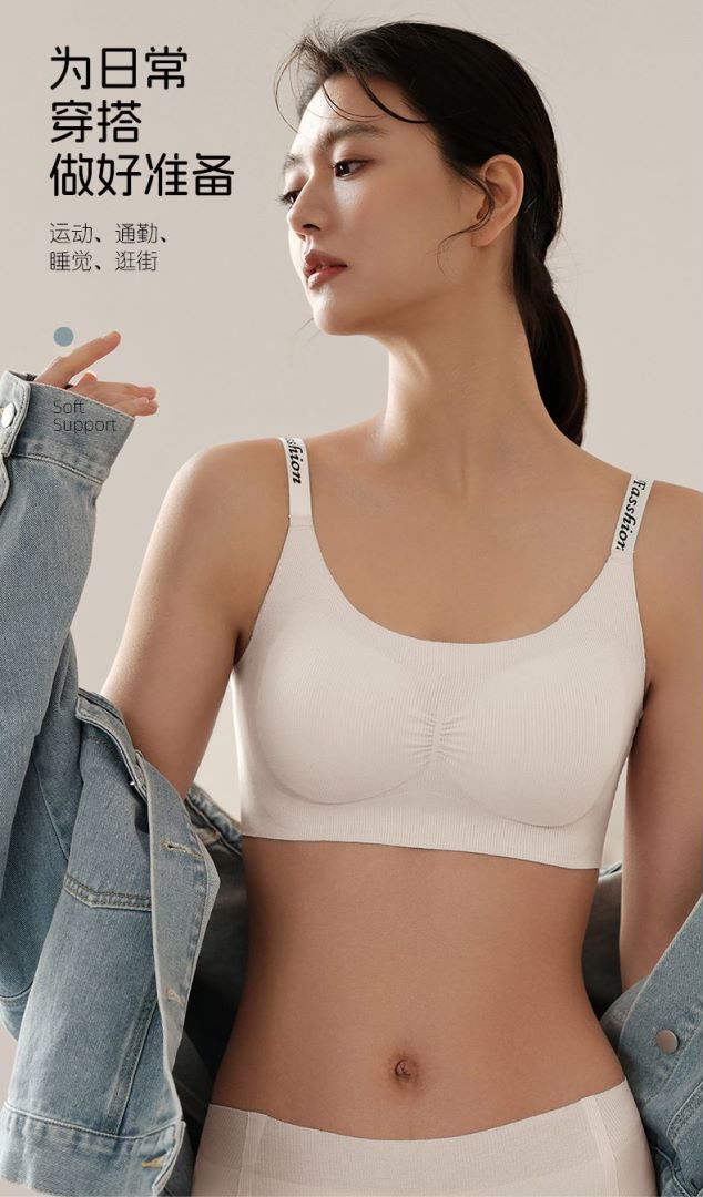 레터 숄더 스트랩 스포츠 알몸 느낌 고정 컵 비 마킹 속옷 여성의 얇은 모임 콜리 식 유방 비 테두리 브래지어스토어 가기