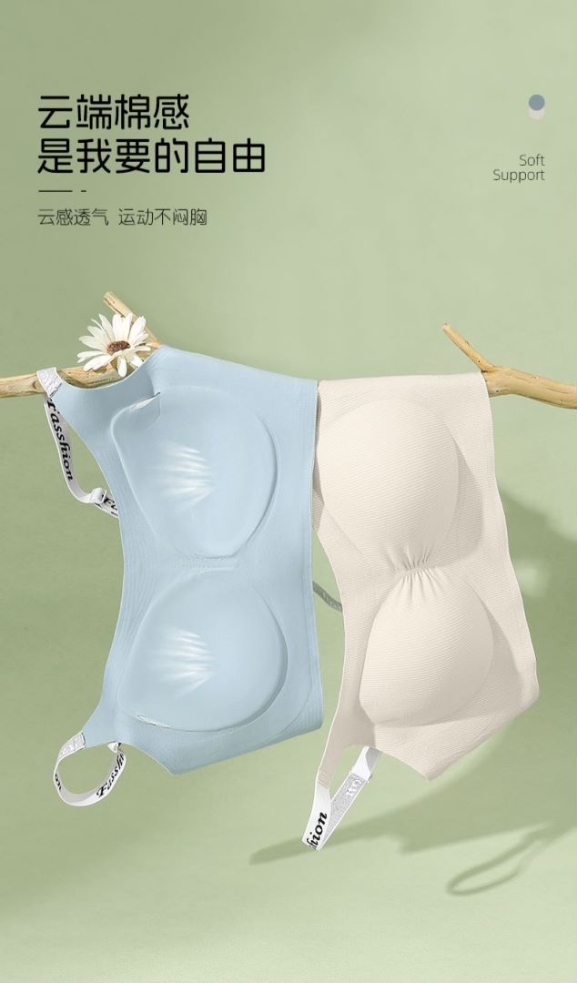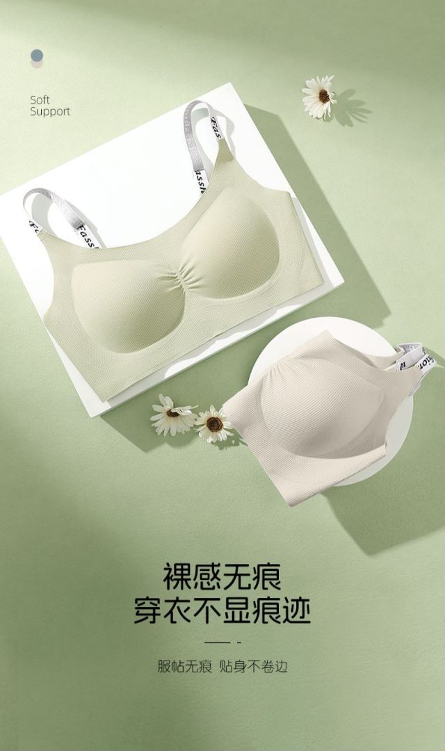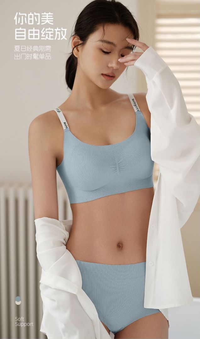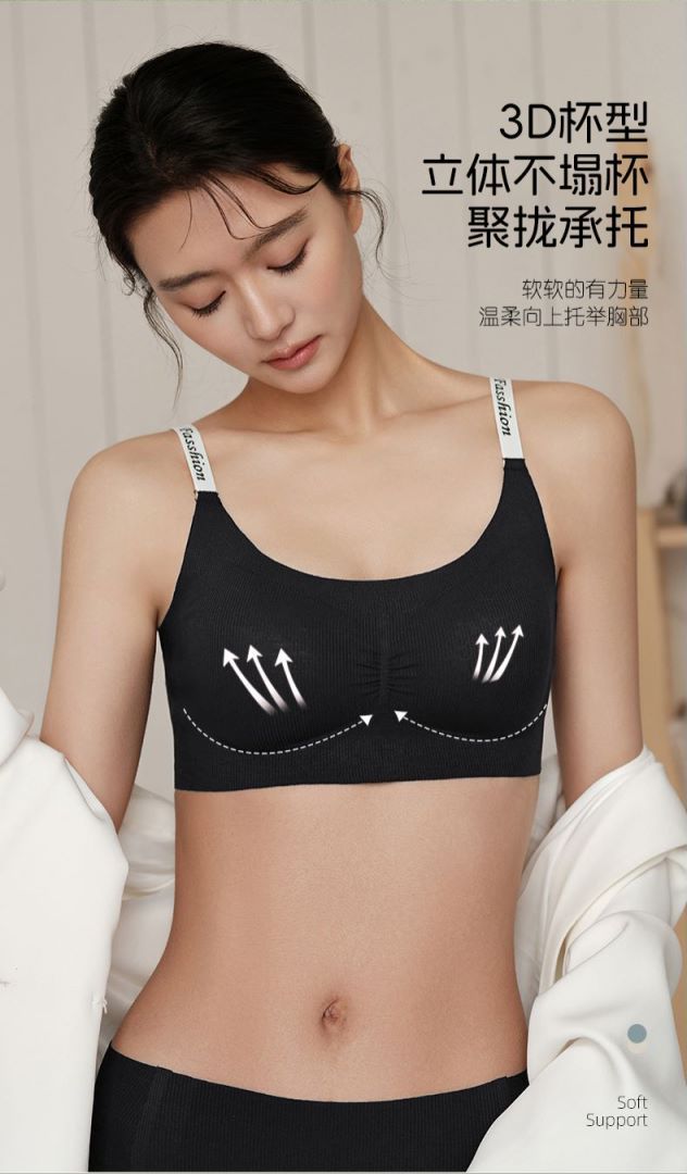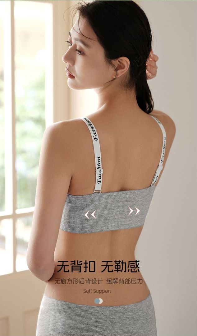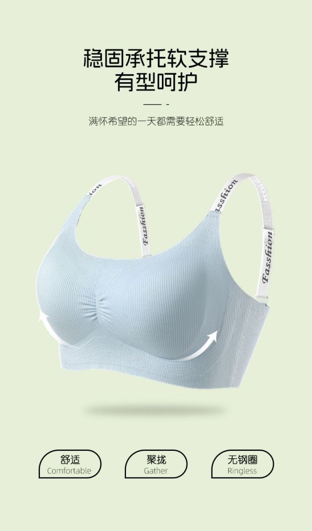 레터 숄더 스트랩 스포츠 알몸 느낌 고정 컵 비 마킹 속옷 여성의 얇은 모임 콜리 식 유방 비 테두리 브래지어스토어 가기