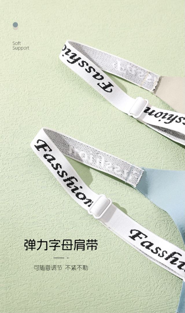 레터 숄더 스트랩 스포츠 알몸 느낌 고정 컵 비 마킹 속옷 여성의 얇은 모임 콜리 식 유방 비 테두리 브래지어