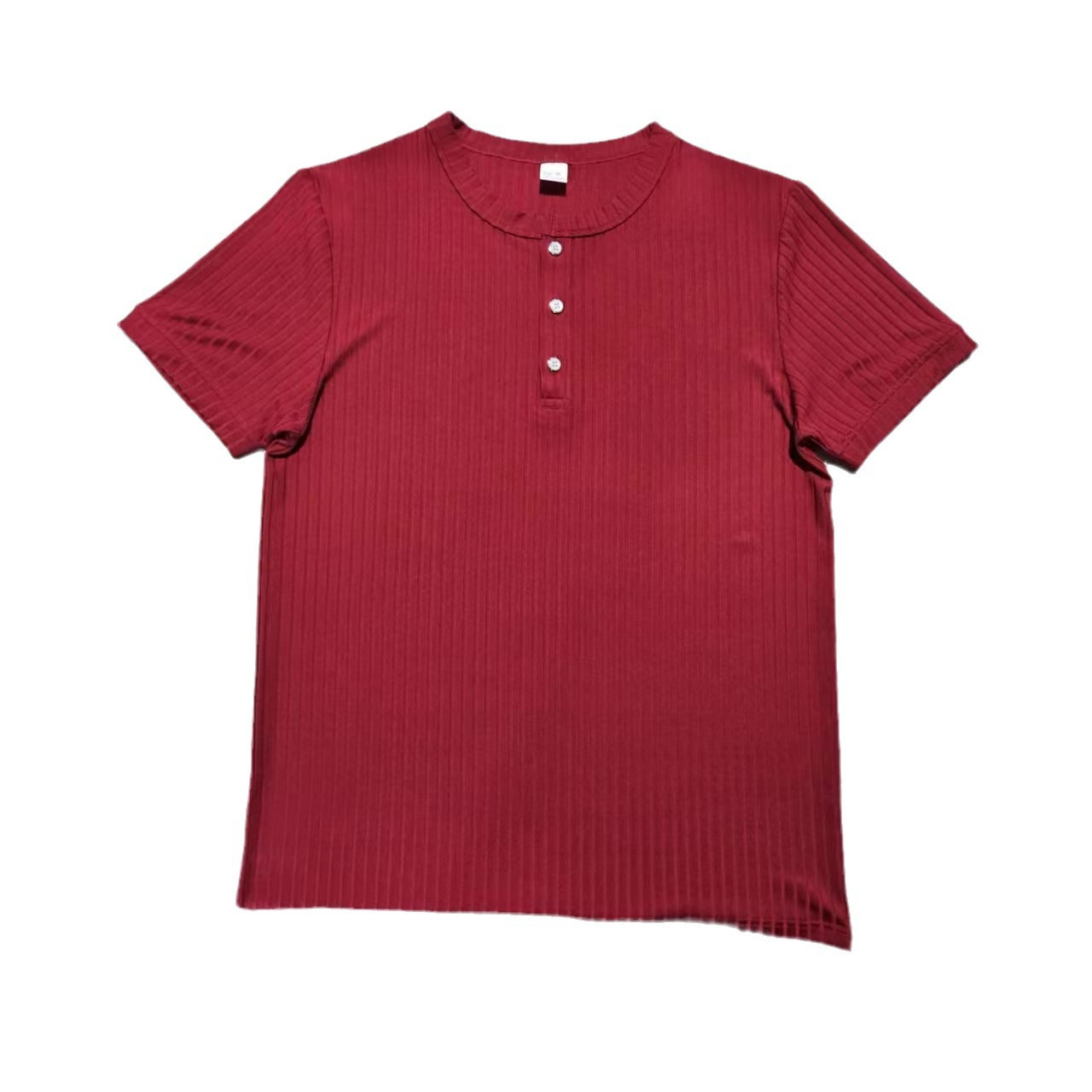 2024 국경 독립 역 AliExpress 남성 솔리드 컬러 핏 스트립 캐주얼 버튼 V-넥 슬림 핏 반팔 헨리 티셔츠