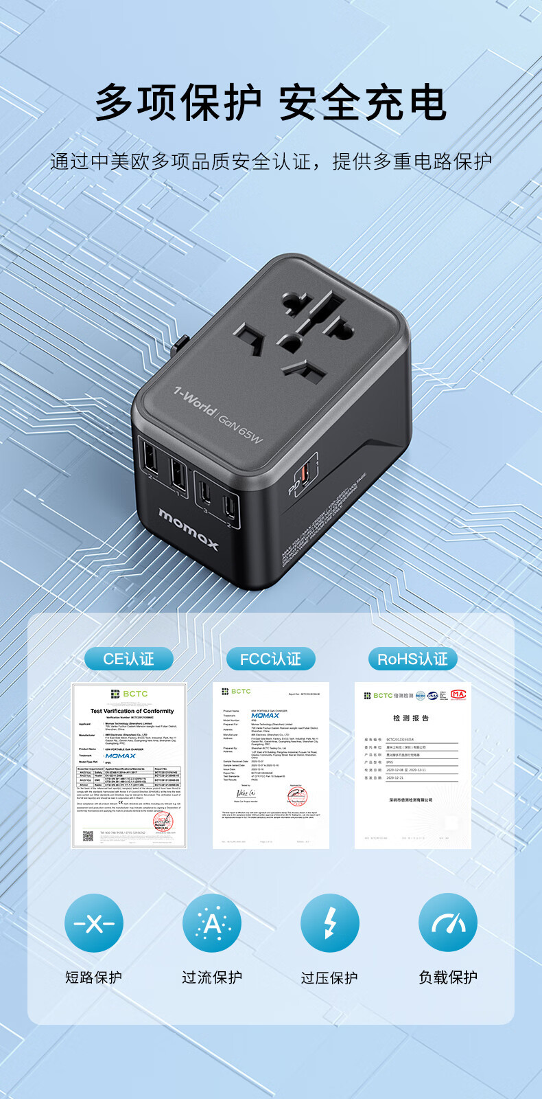 MOMAX Momis 65W 질화 글로벌 여행 스위칭 플러그 빠른 충전 국제 태국 충전 헤드스토어 가기
