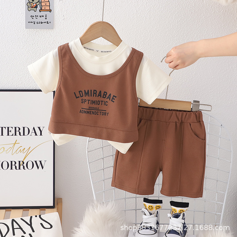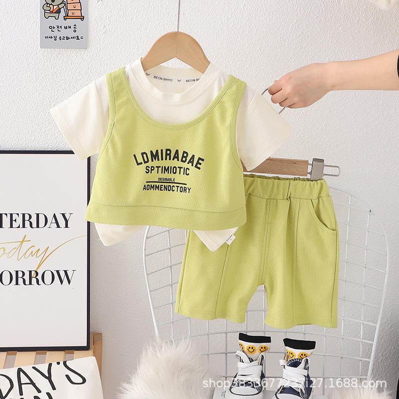 아동복 소년 여름 원피스 잘 세트 새 어린이 중소 어린이 아기 편지 조끼 반팔 여름 투피스 세트