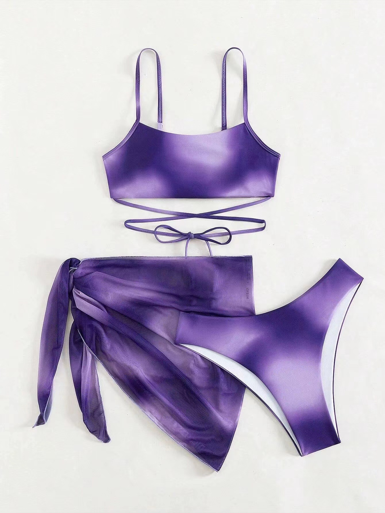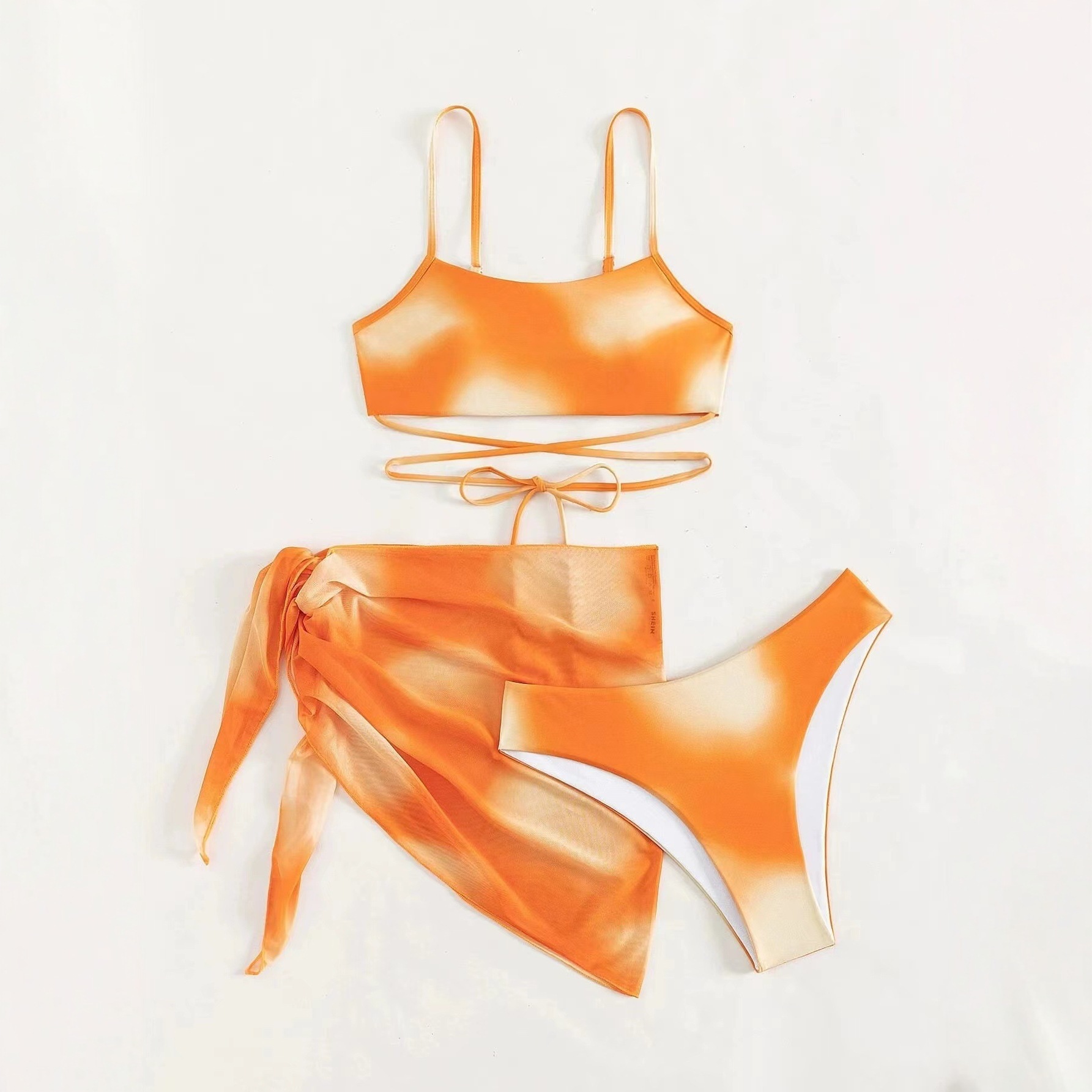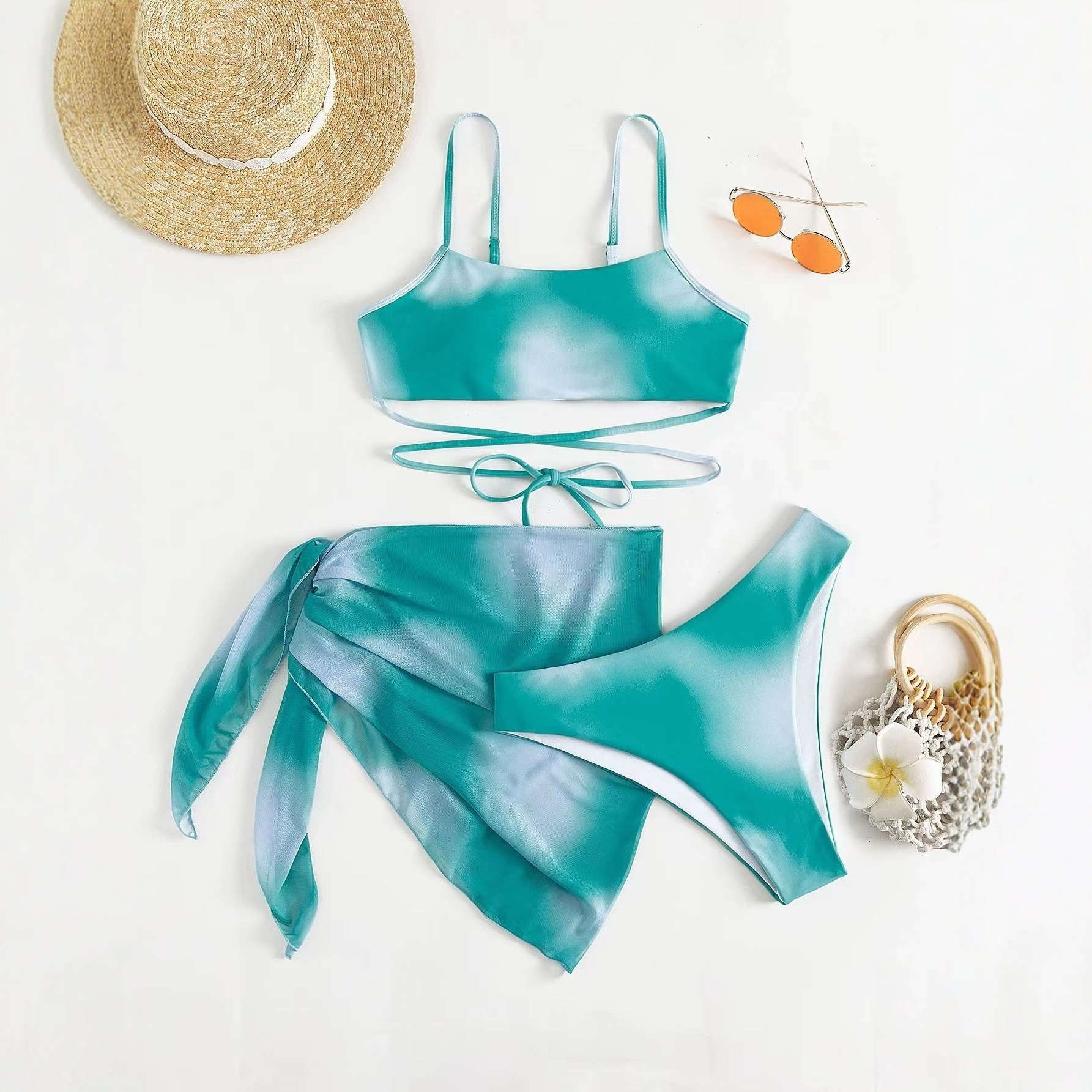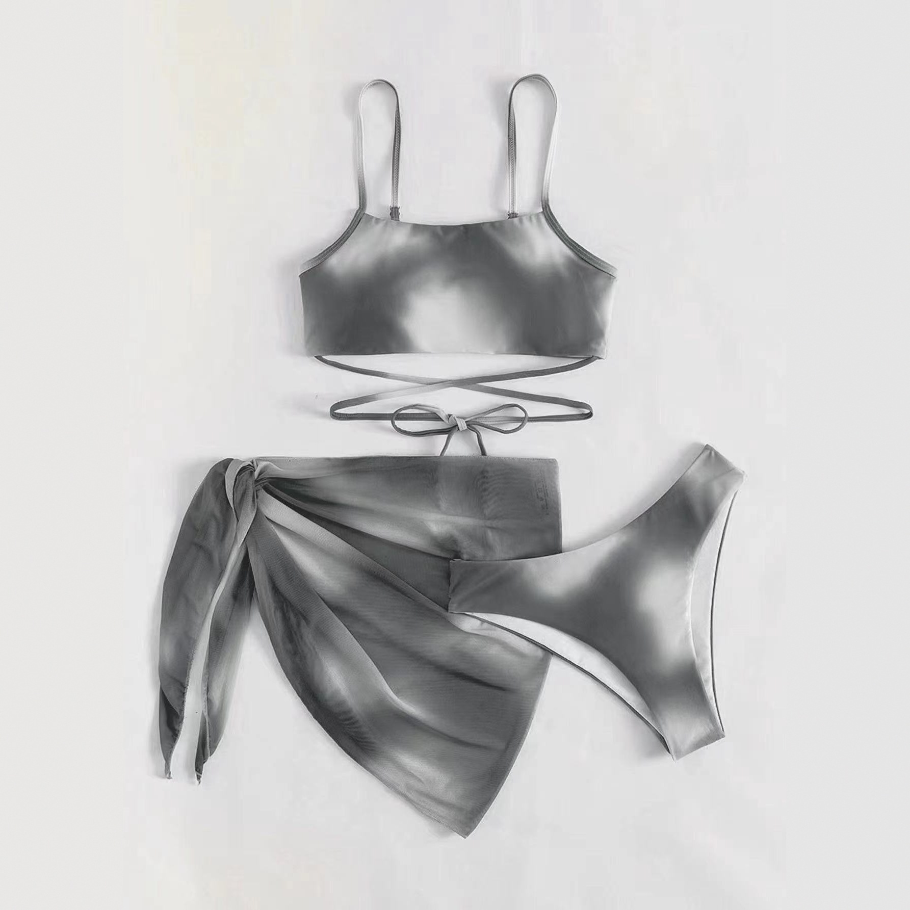 2026 유럽 및 미국 크로스보더 타이다이 비키니 수영복 여성용 3피스 세트 망사 스커트 분리형 비키니 아마존 수영복
