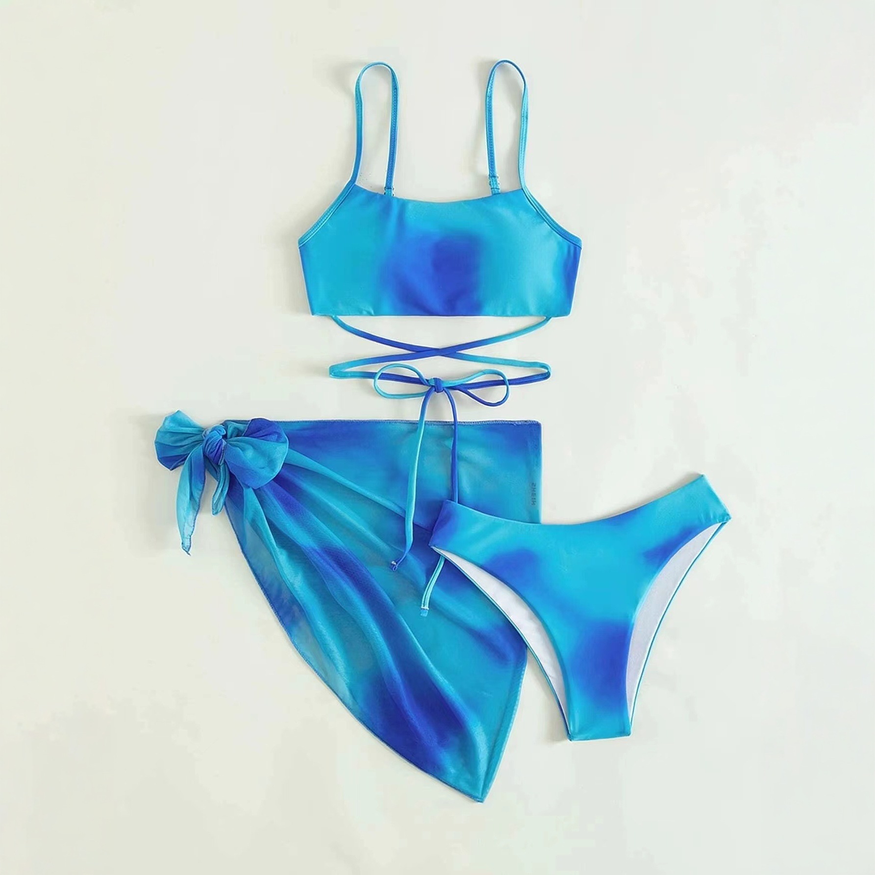 2026 유럽 및 미국 크로스보더 타이다이 비키니 수영복 여성용 3피스 세트 망사 스커트 분리형 비키니 아마존 수영복스토어 가기