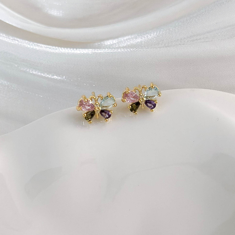 컬러 지르콘 사랑 나비 귀걸이 작고 절묘한 미니 귀걸이 2024 새로운 외국 스타일 달콤한 기질 귀걸이스토어 가기
