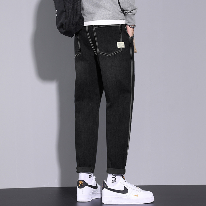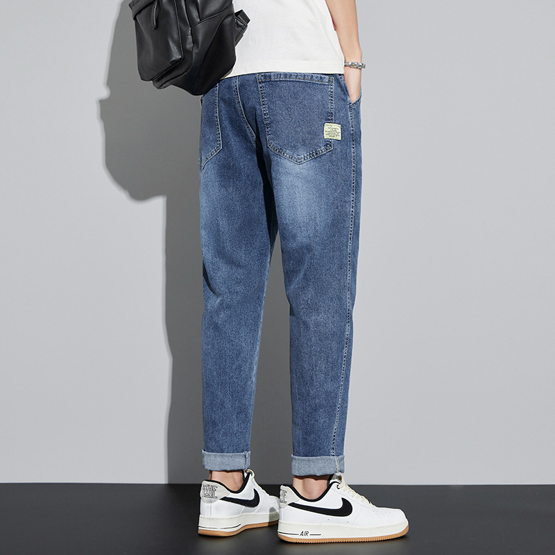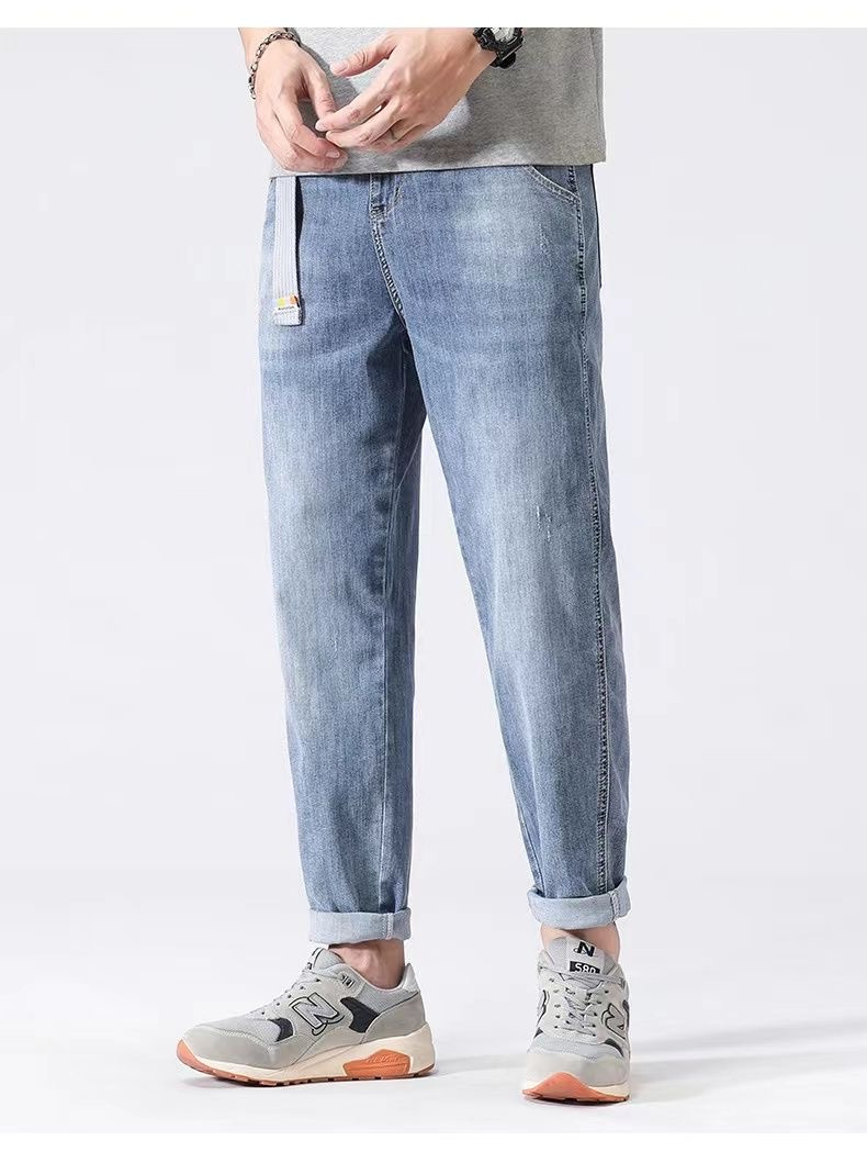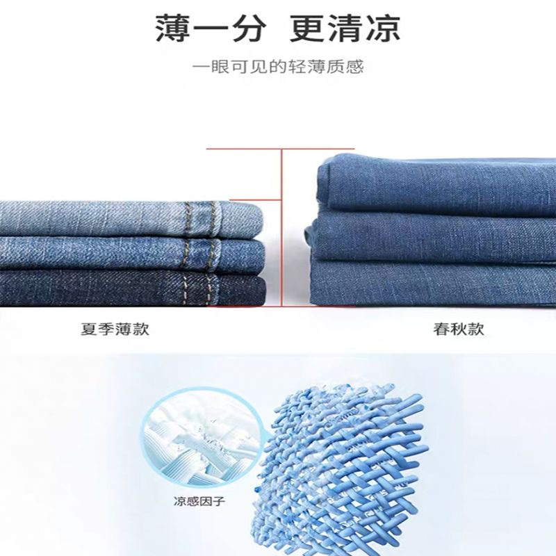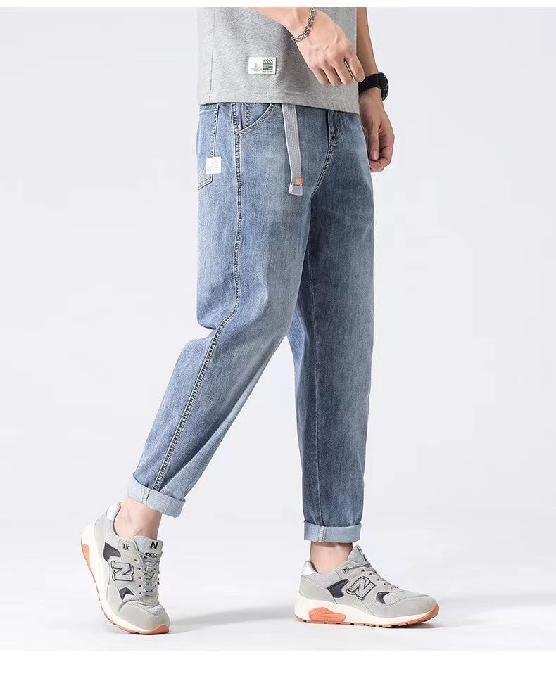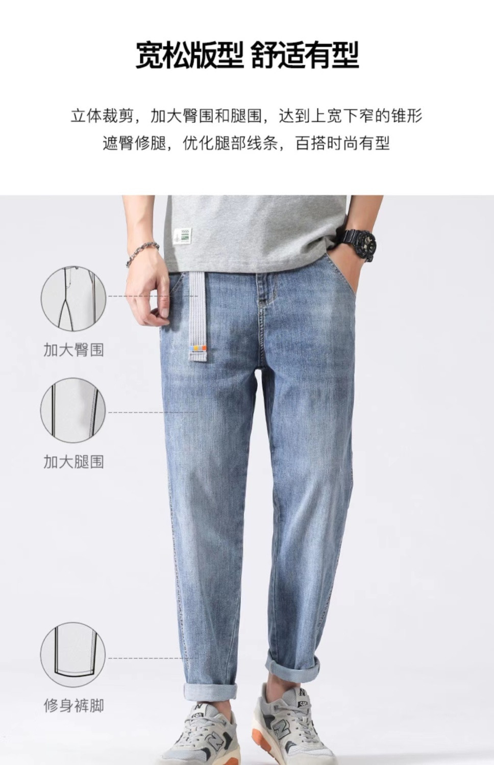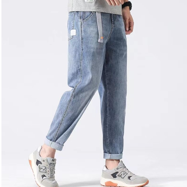 2025 아이스 실크 여름 얇은 자른 청바지 남성용 트렌디 브랜드 느슨한 다리 캐주얼 하렘 바지스토어 가기
