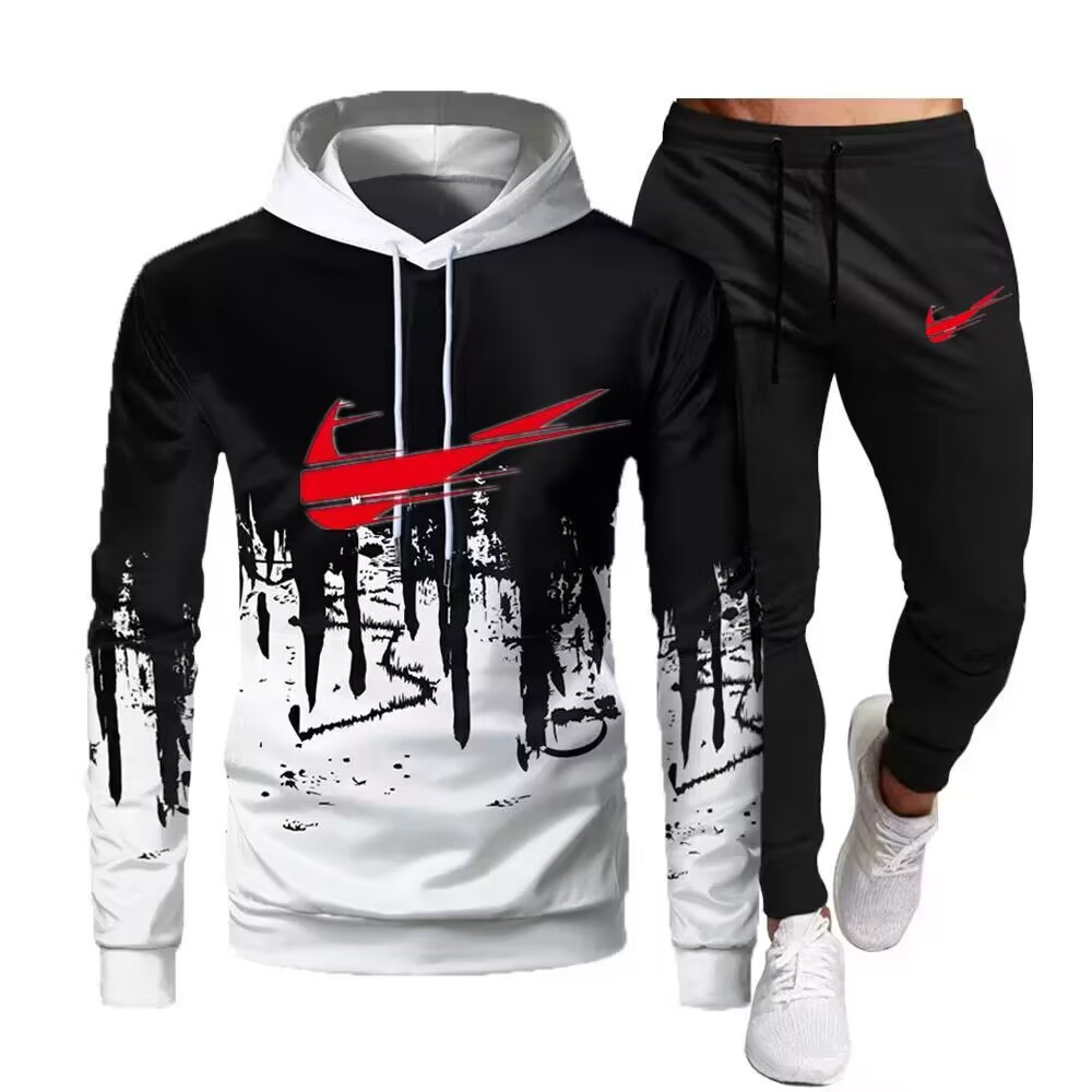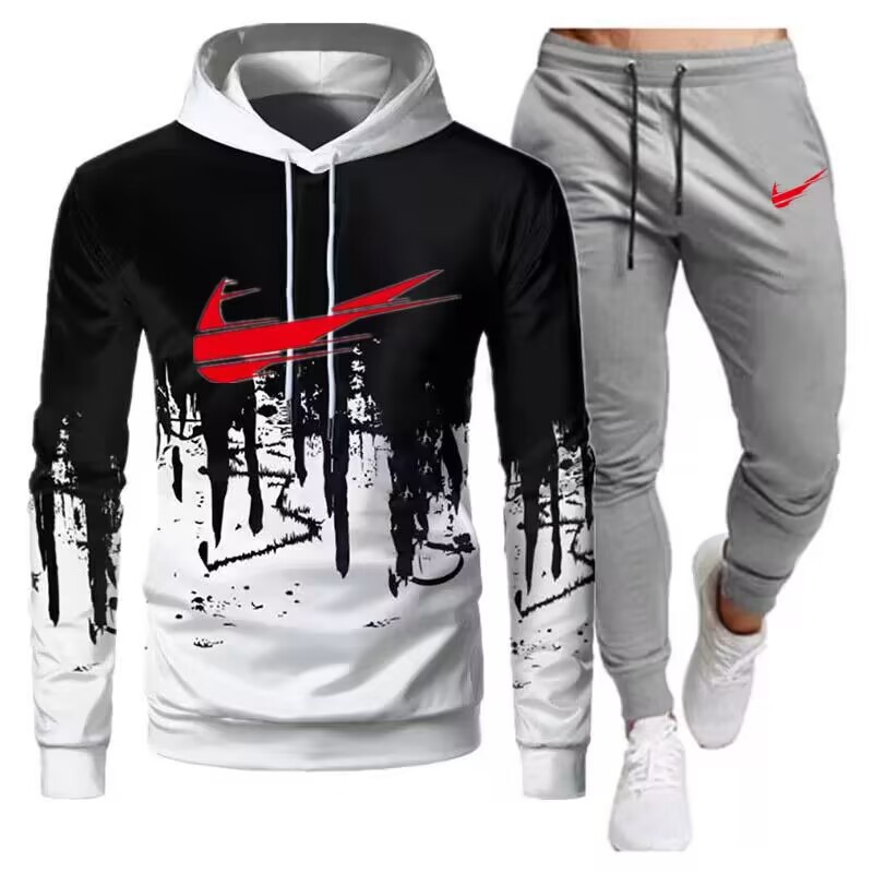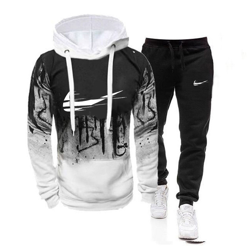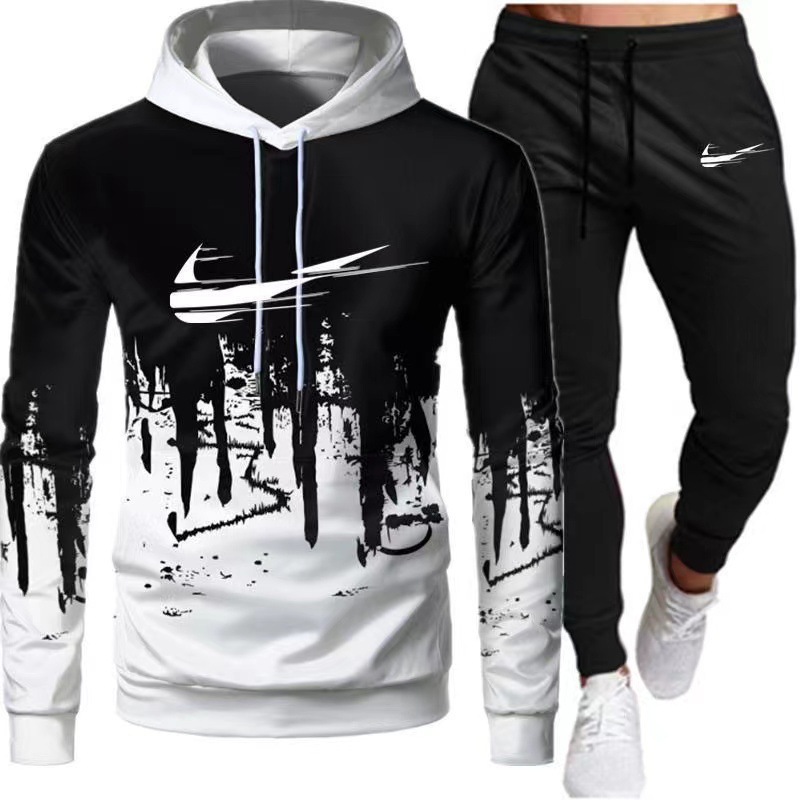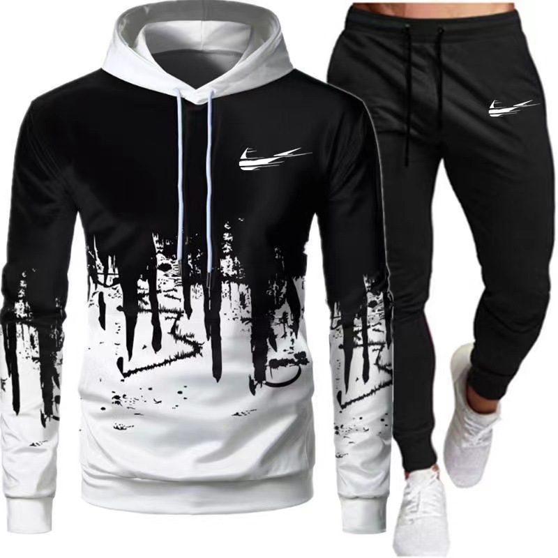 2024 새로운 가을, 겨울 남성 스포츠 정장 캐주얼 스플래시 잉크 인쇄 후드 티셔츠 남성용 트렌디 자켓스토어 가기