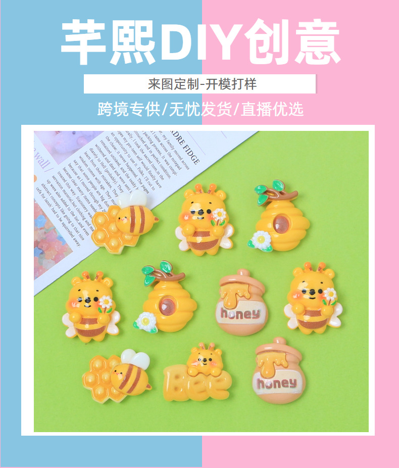 귀여운 작은 말벌 만화 크림 접착제 액세서리 창조적 인 신발 버클 소재 수지 액세서리 diy 보석 머리핀 도매스토어 가기