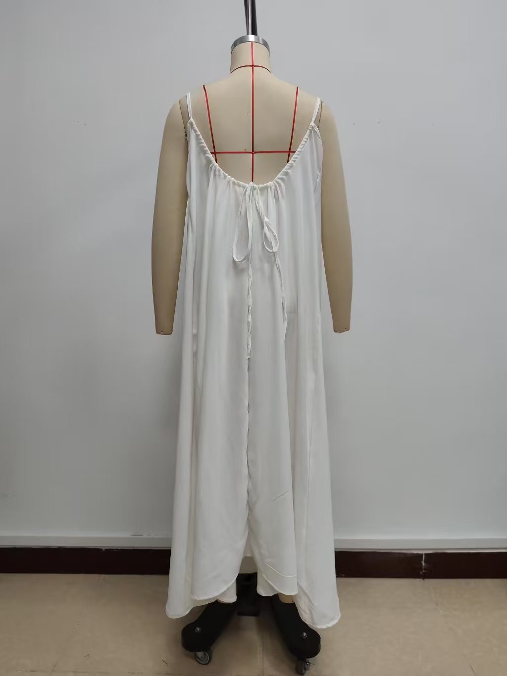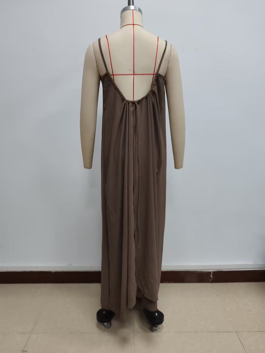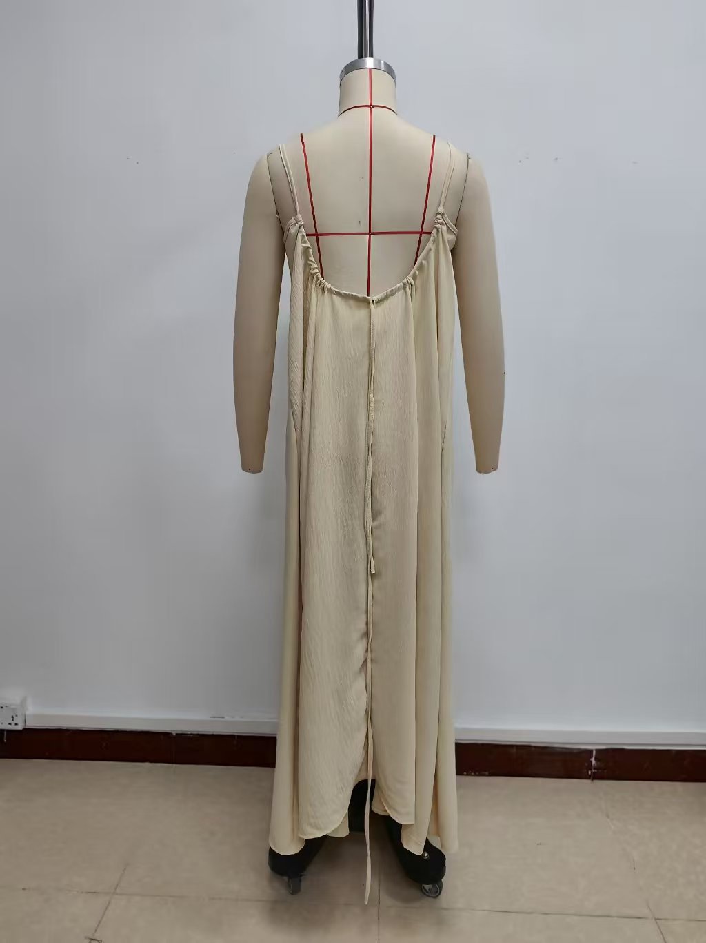 2026년 크로스보더 아마존 알리익스프레스 신상 여성용 멜빵 코트, 백리스 루즈핏 홈웨어 원피스
