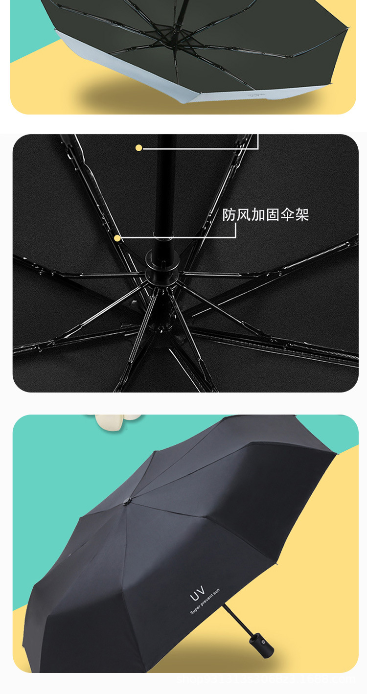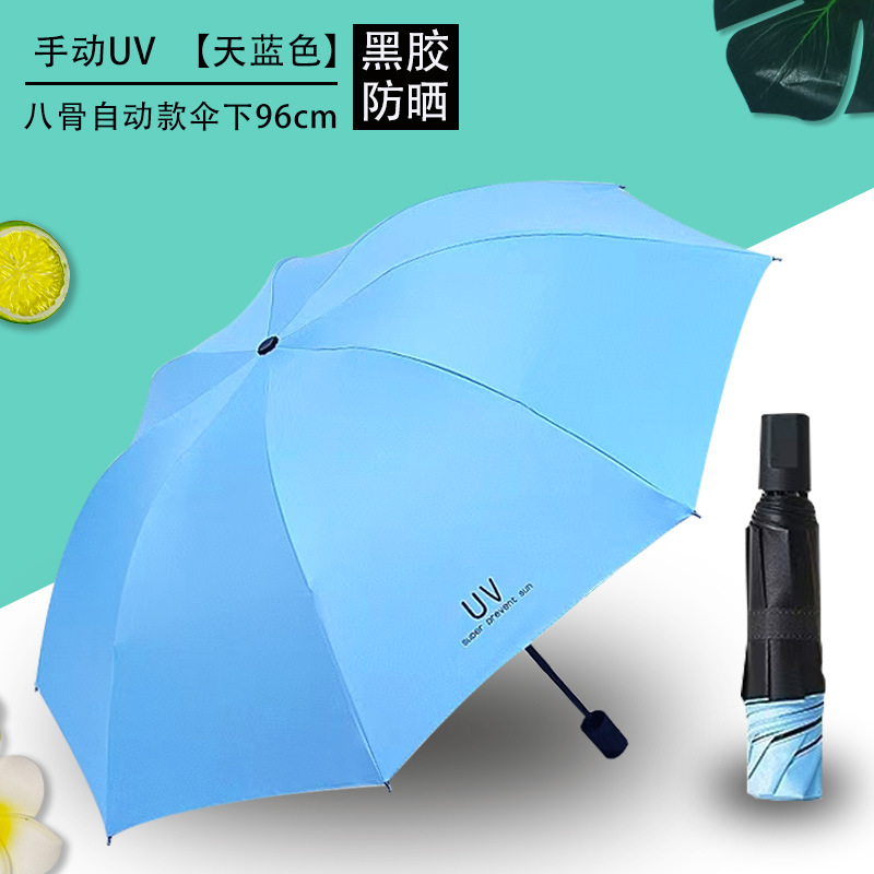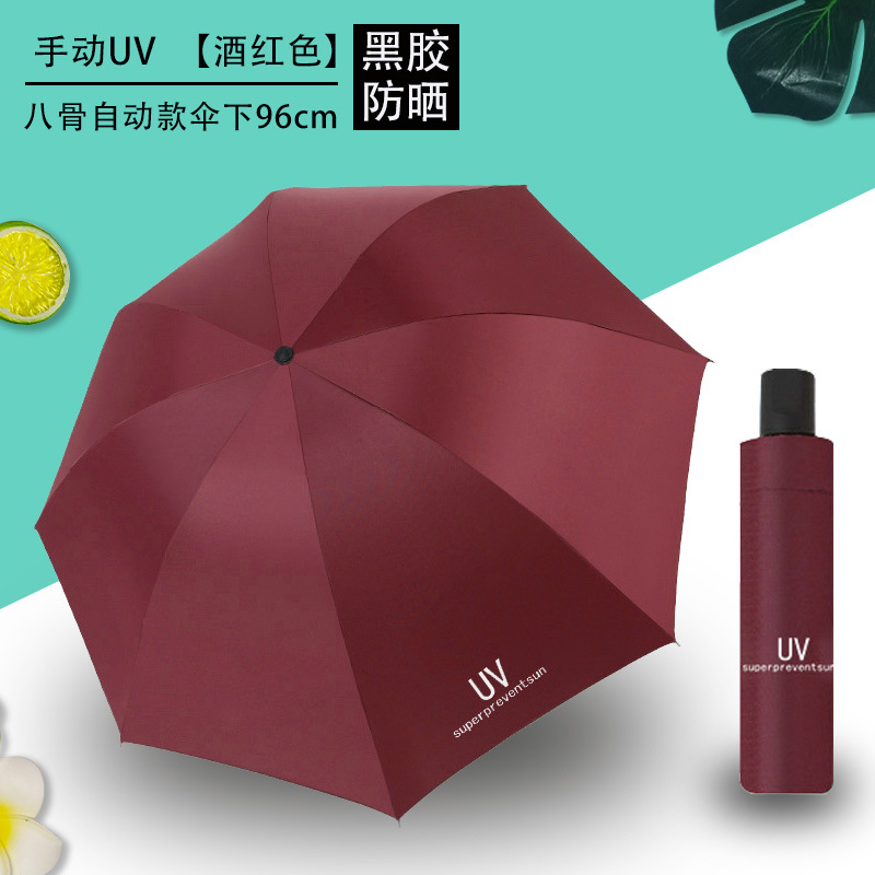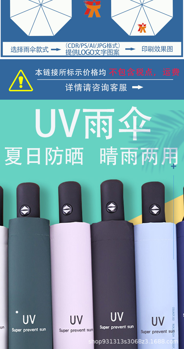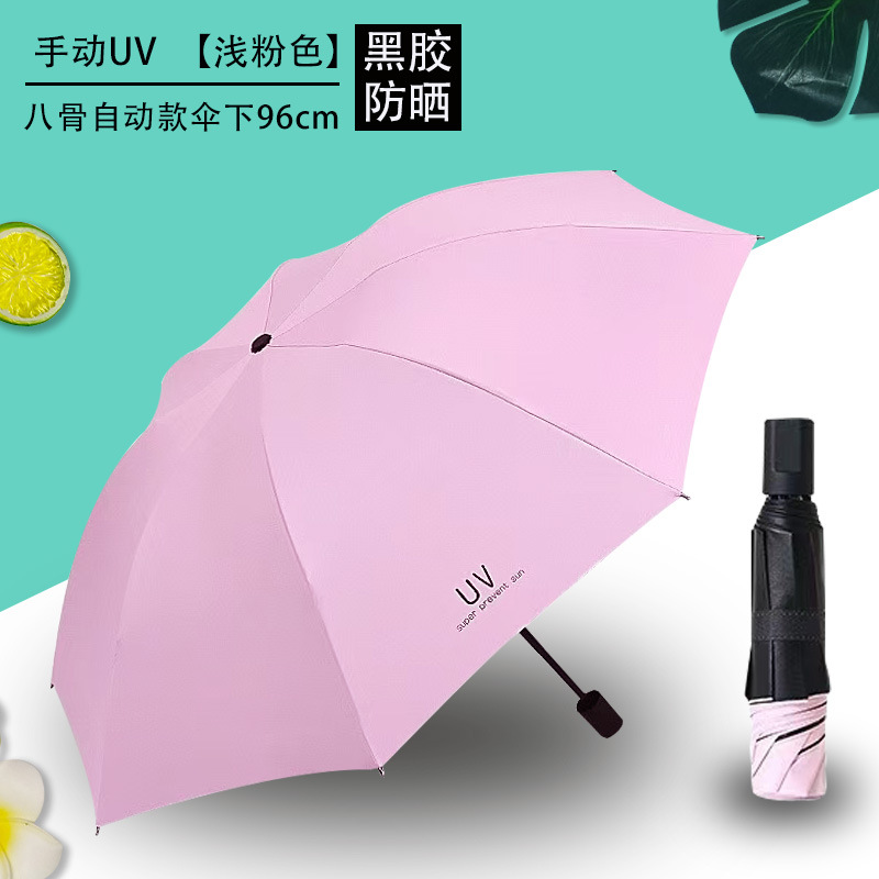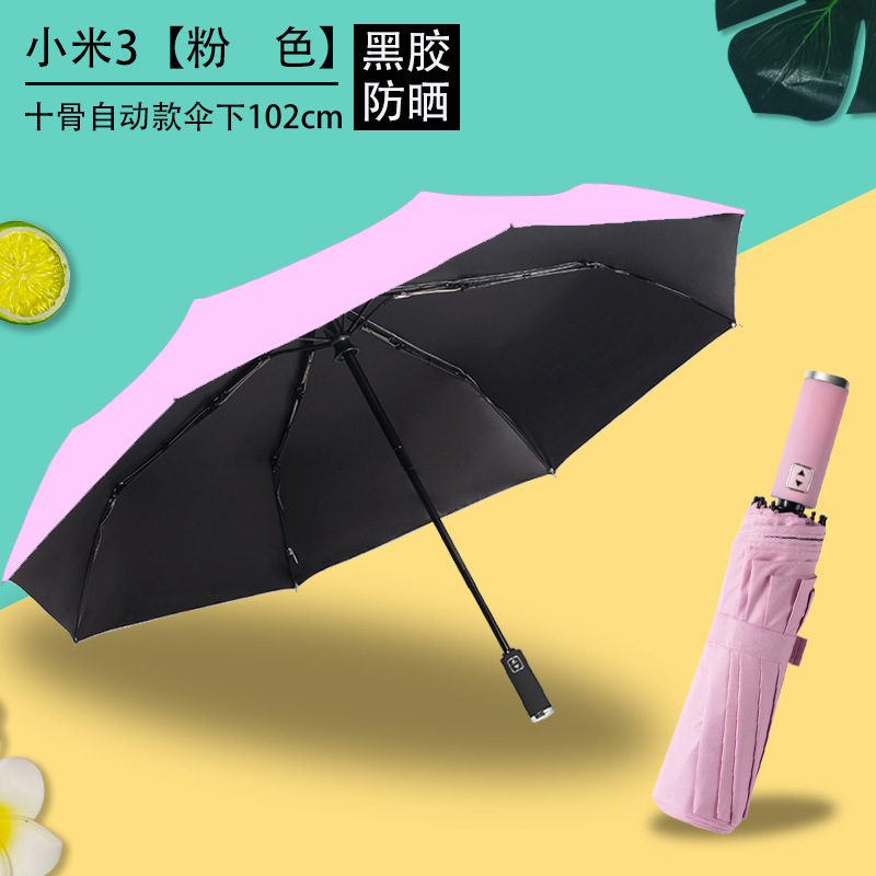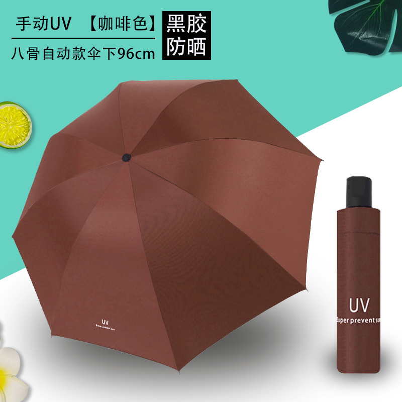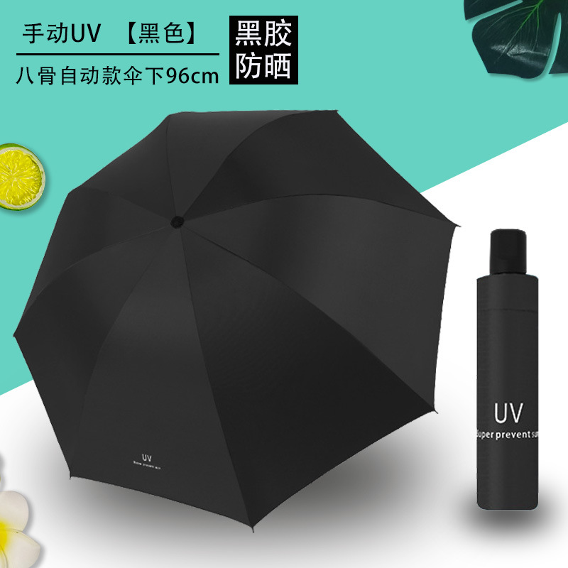 Uv 우산 여성의 높은 수준의 선 스크린 태양 우산 자동 접이식 검은 고무 비와 빛나는 이중 목적 인쇄 로고 광고 우산스토어 가기
