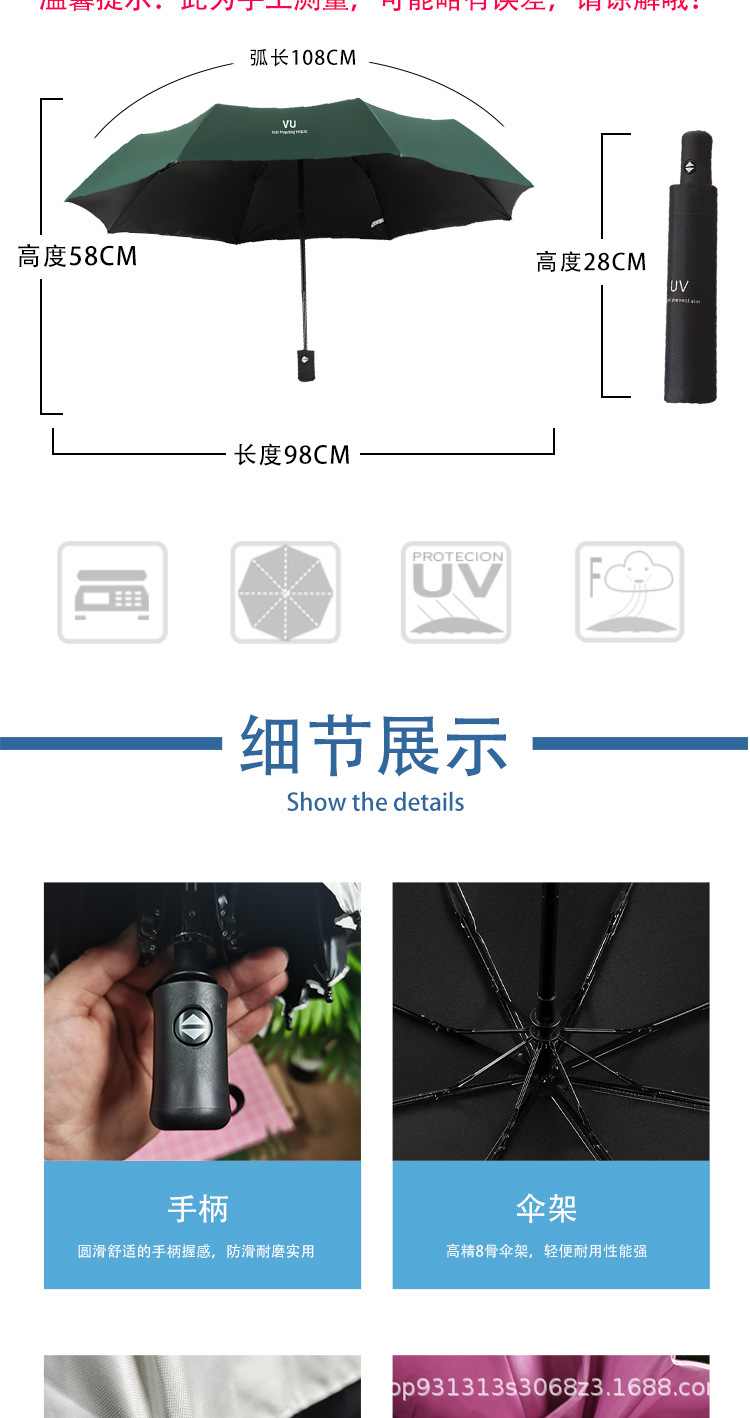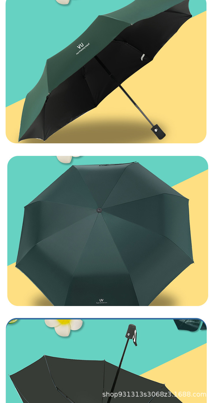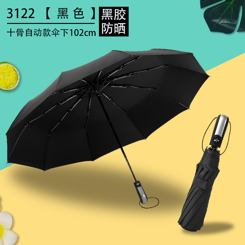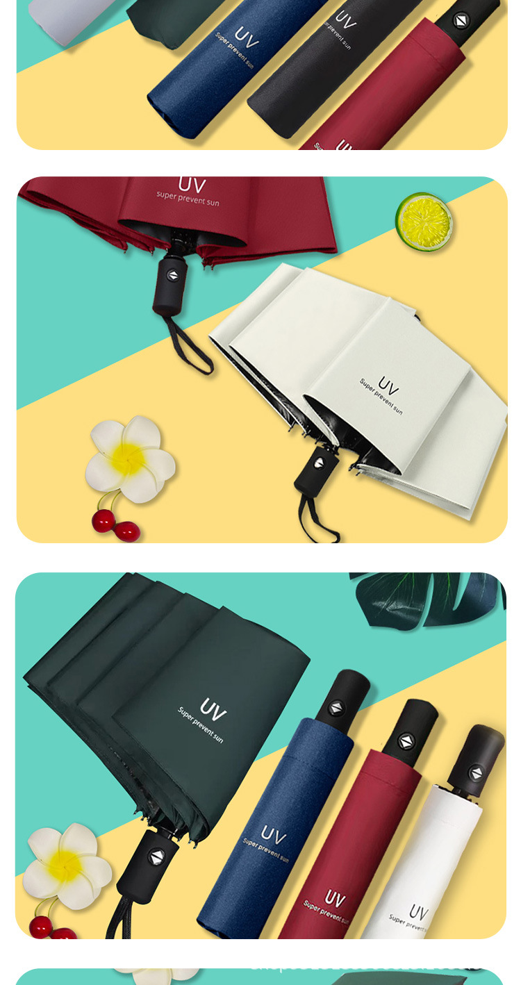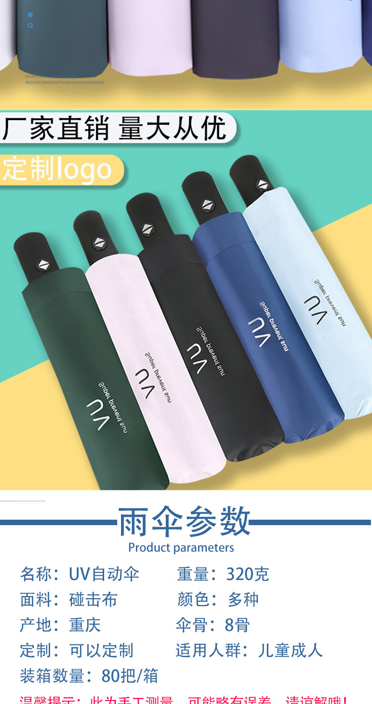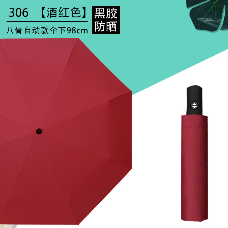Uv 우산 여성의 높은 수준의 선 스크린 태양 우산 자동 접이식 검은 고무 비와 빛나는 이중 목적 인쇄 로고 광고 우산스토어 가기