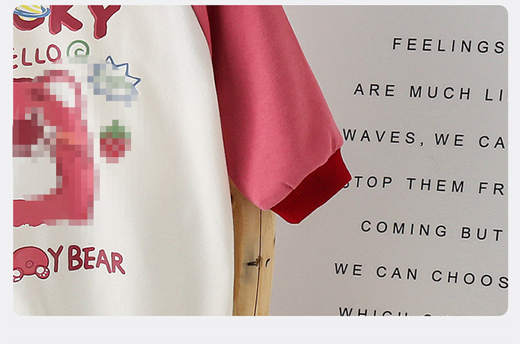 • 긴 소매 대비 딸기 곰 모자 셔츠