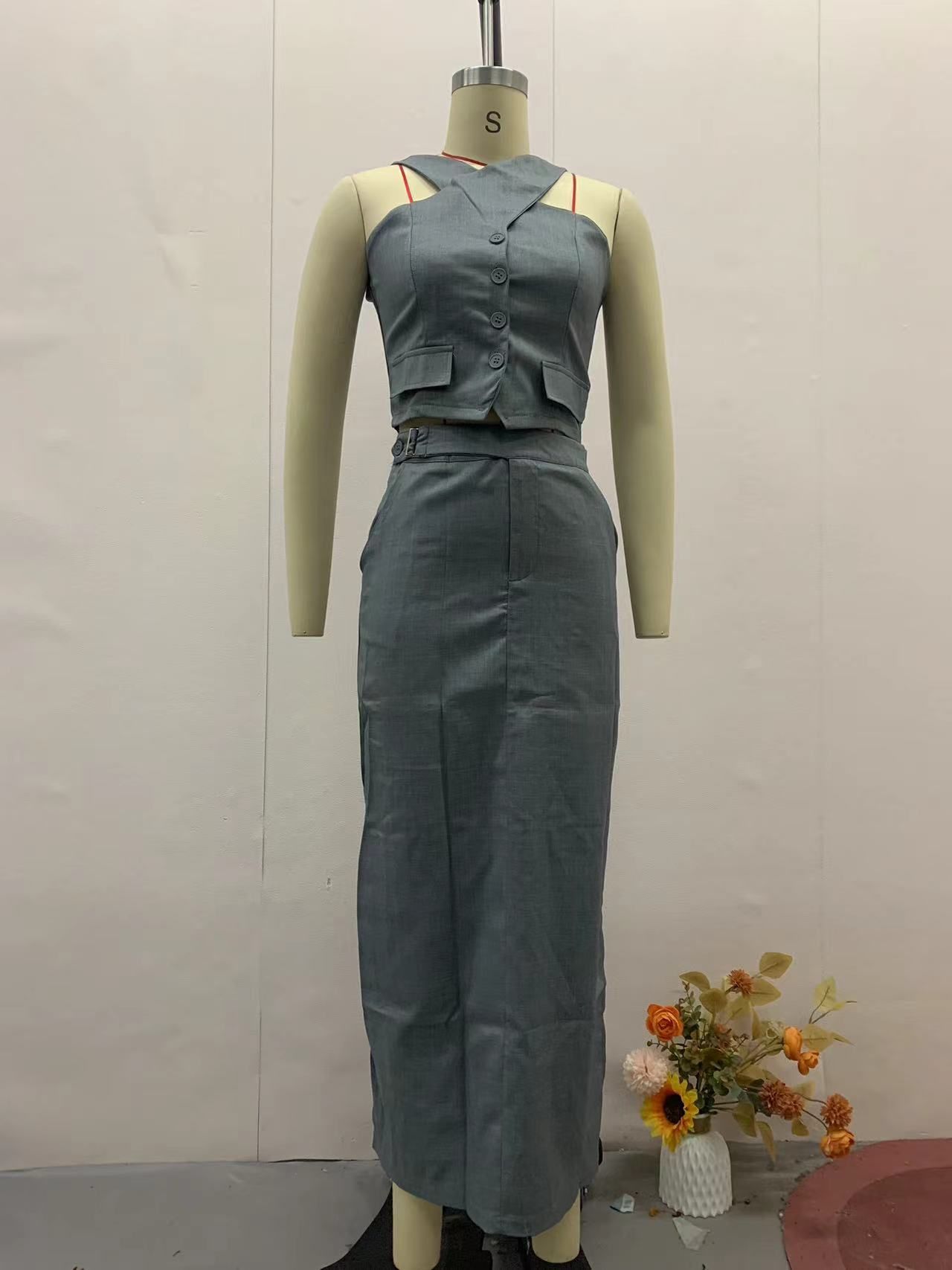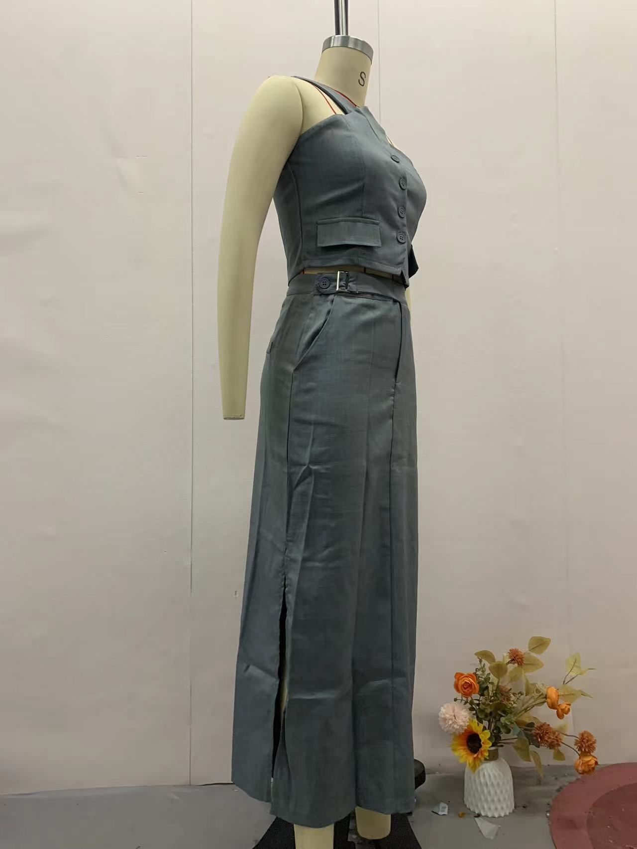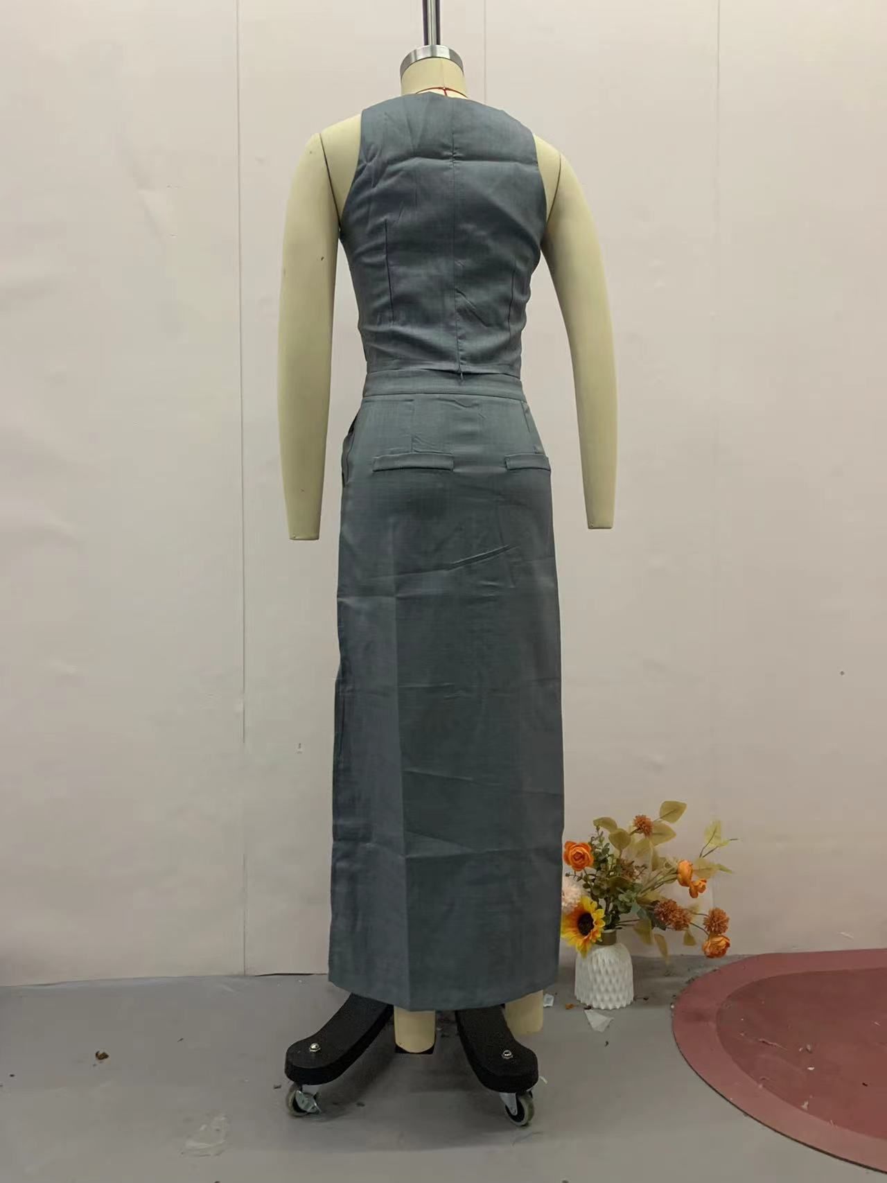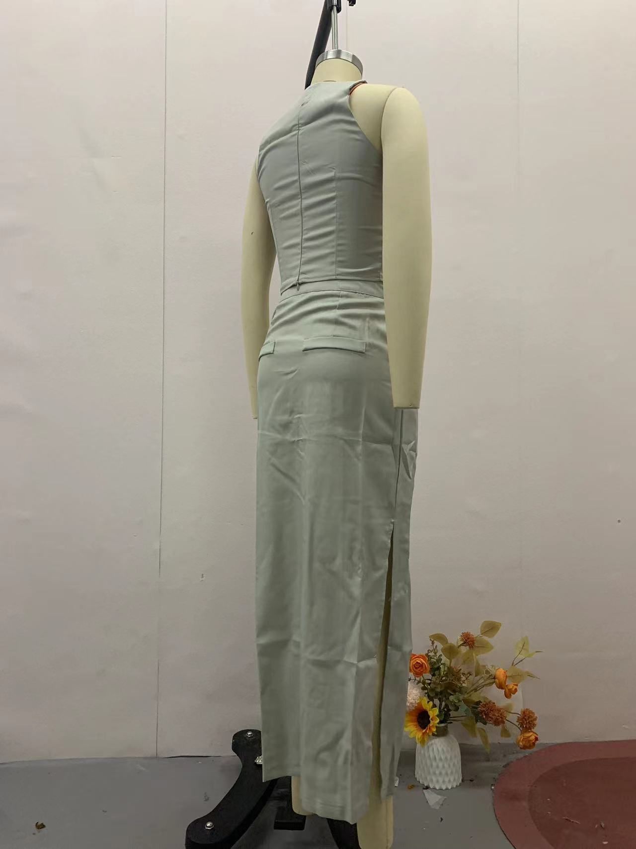 2024 년 여름 새로운 유럽과 미국 아마존 국경 솔리드 컬러 패션 조끼 높은 허리 스커트 투피스 세트