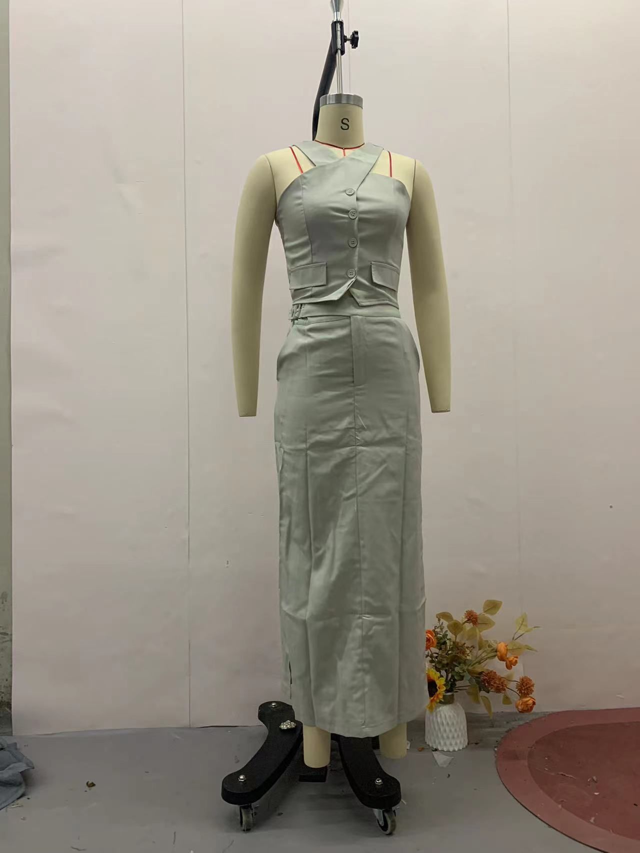 2024 년 여름 새로운 유럽과 미국 아마존 국경 솔리드 컬러 패션 조끼 높은 허리 스커트 투피스 세트스토어 가기
