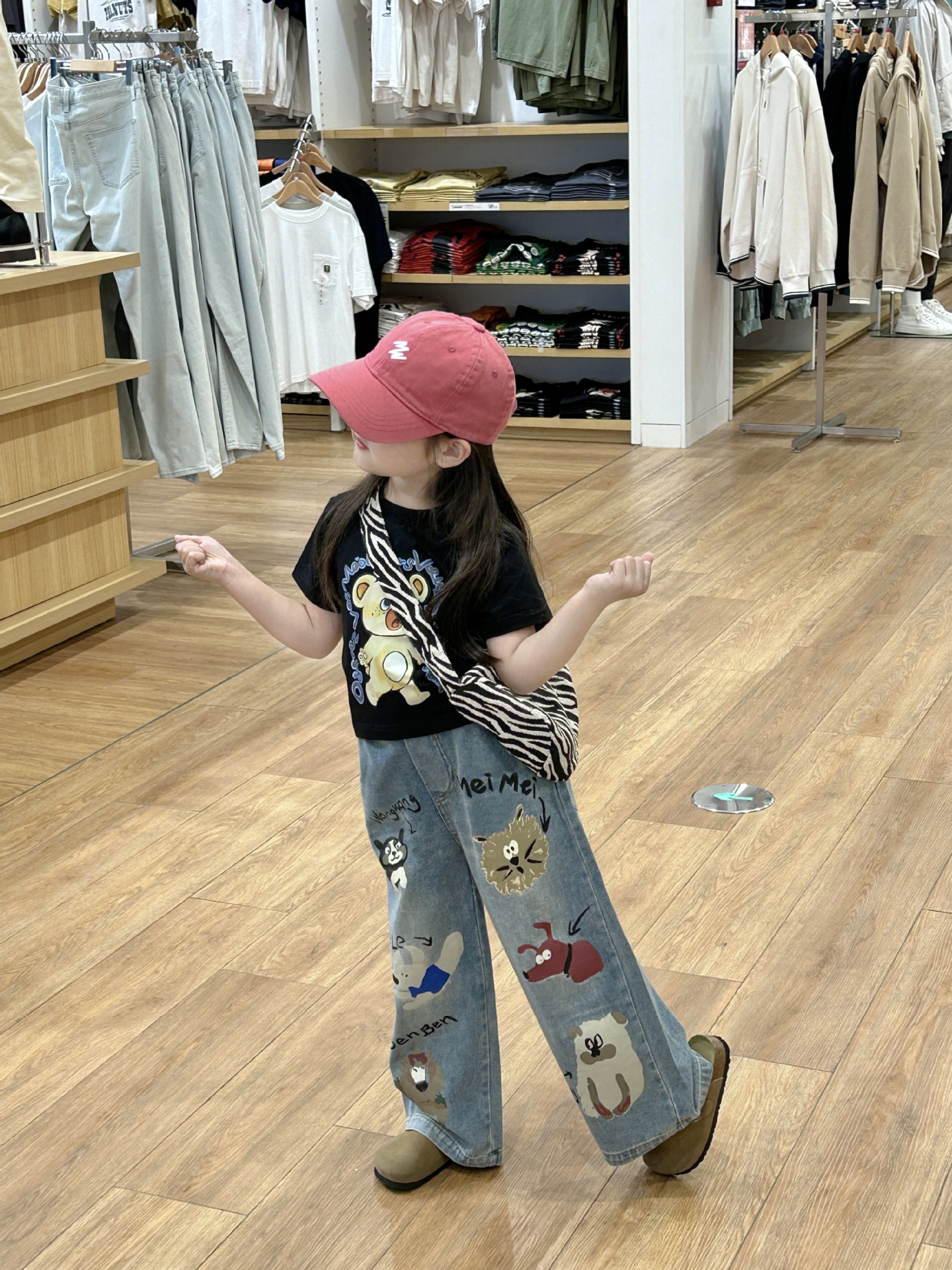 여자 넓은 다리 바지 여름 새로운 스타일 중소 어린이 2-7 세 한국 스타일 느슨한 스트레이트 바지 어린이 청바지 유행스토어 가기