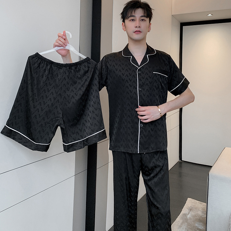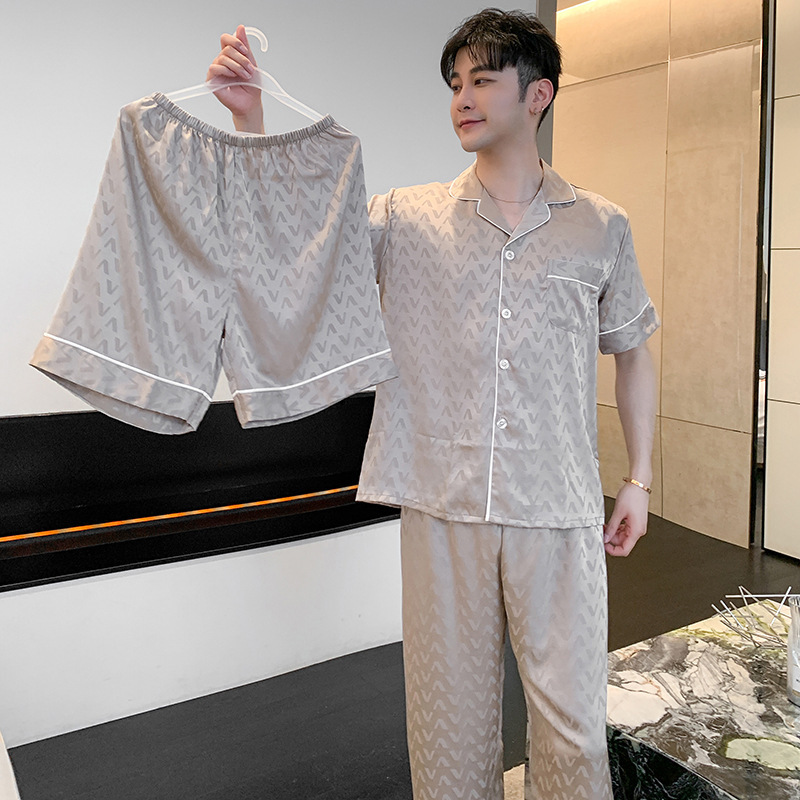 얼음과 눈 실크 잠옷 남자 봄과 가을 긴팔 바지 자카드 라이트 럭셔리 시뮬레이션 실크 한국식 느슨한 대형 홈스토어 가기