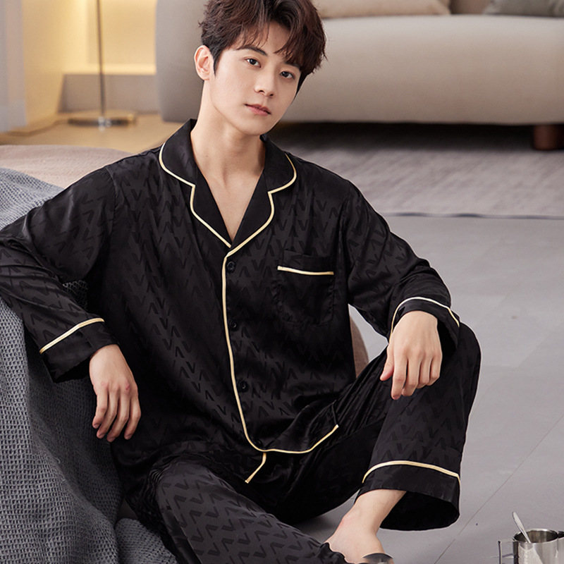 얼음과 눈 실크 잠옷 남자 봄과 가을 긴팔 바지 자카드 라이트 럭셔리 시뮬레이션 실크 한국식 느슨한 대형 홈