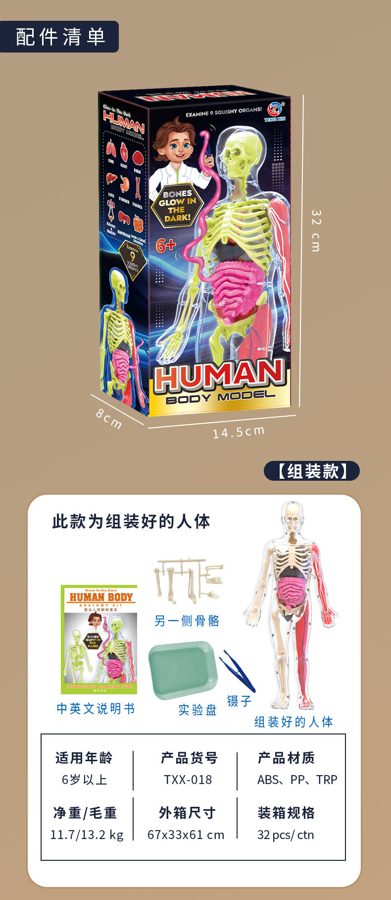 인간 해부학 모델 학생 과학 실험 뼈 장기 의료 교육 보조 수제 DIY 과학 및 교육 교육 장난감스토어 가기