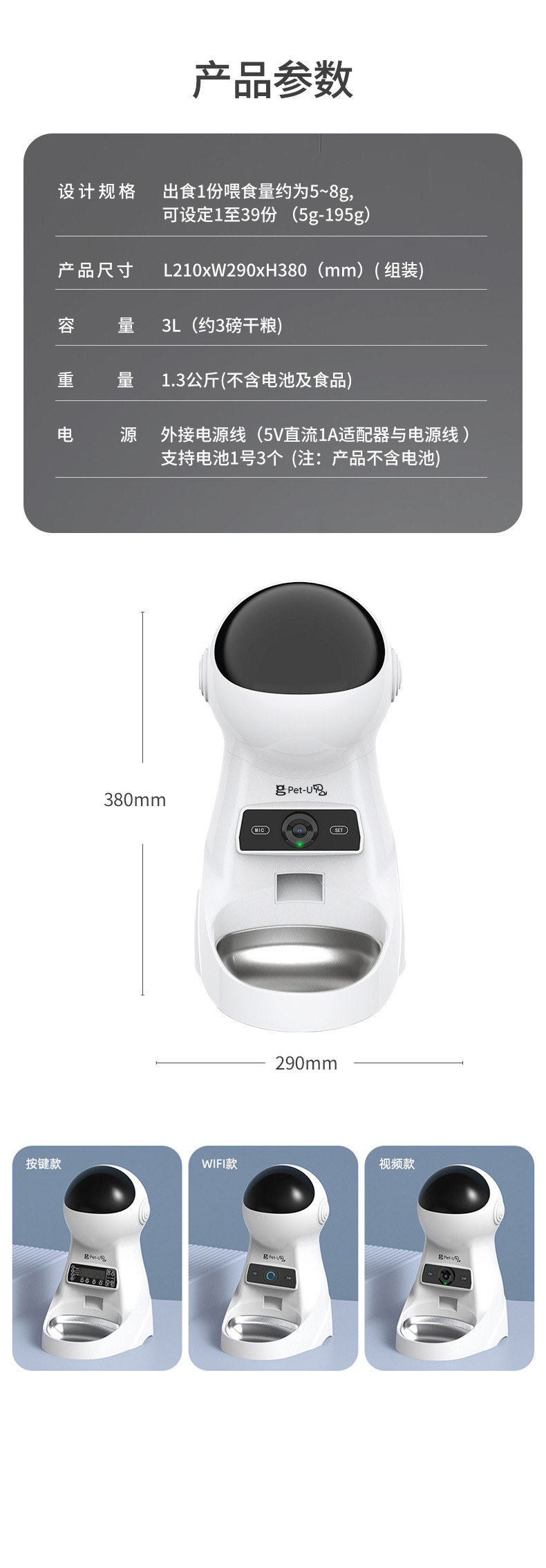 애완동물 자동 급식기, 탈착식, 타이머 및 정량 조절 가능, 지능형 비디오 모니터링, 개밥 급식기, 지능형 볼륨 제어