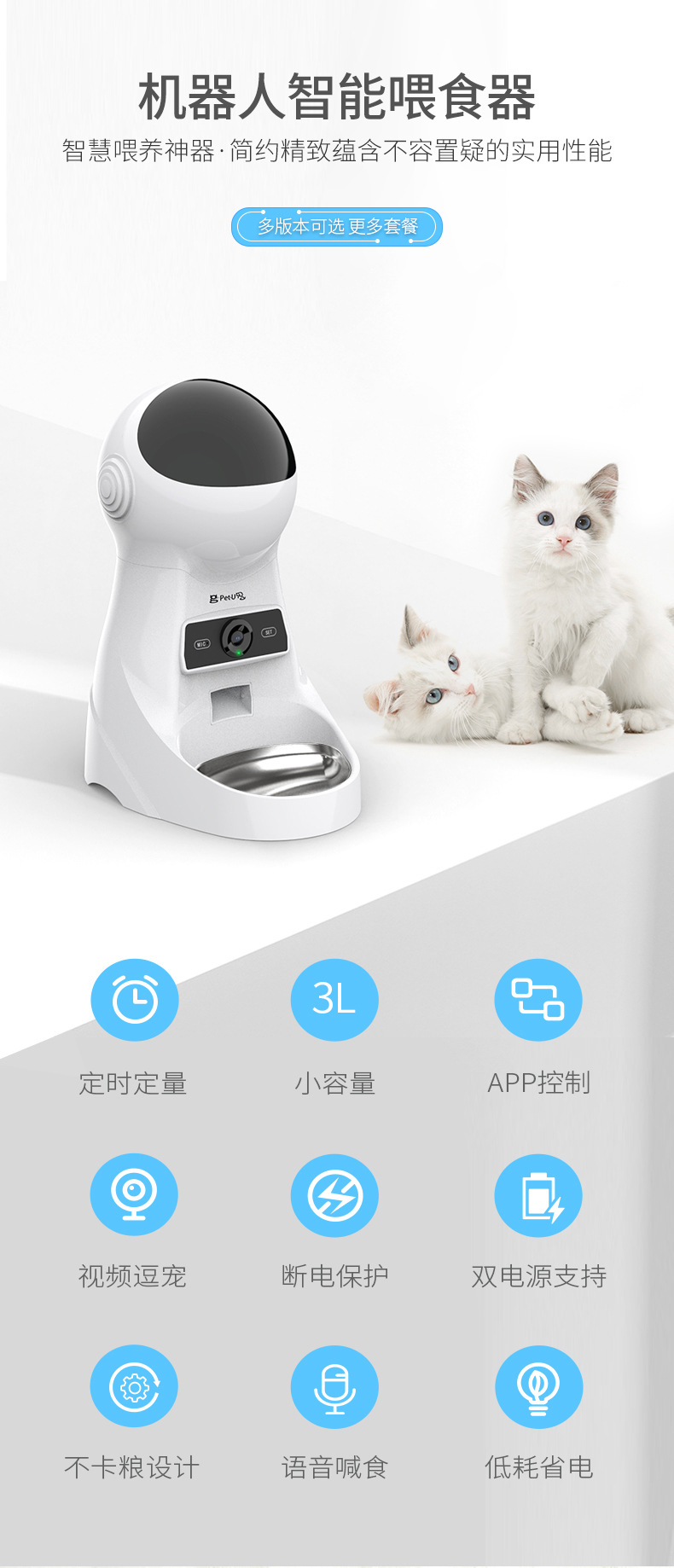애완동물 자동 급식기, 탈착식, 타이머 및 정량 조절 가능, 지능형 비디오 모니터링, 개밥 급식기, 지능형 볼륨 제어스토어 가기