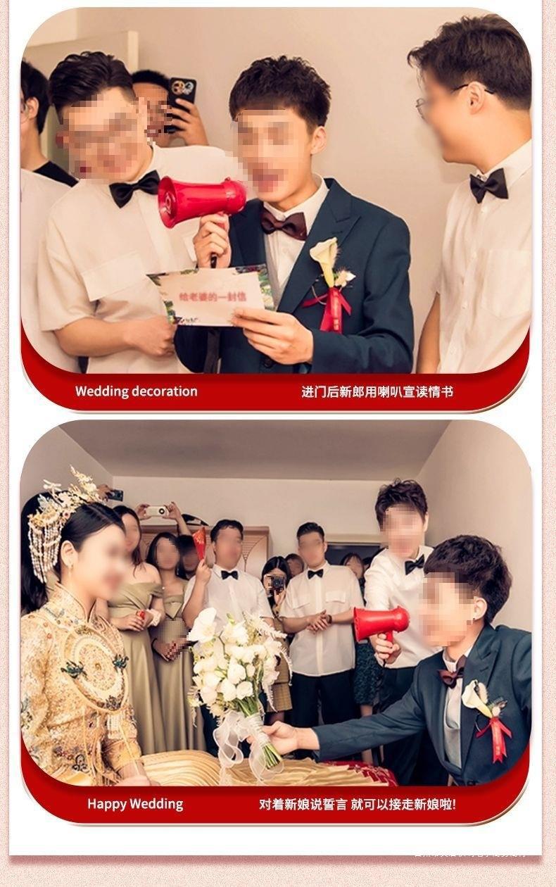 빨간 확성기 경적은 친척들에게 인사하고 문, 게임 소품, 신랑의 대화 형 사진 트릭을 차단합니다.