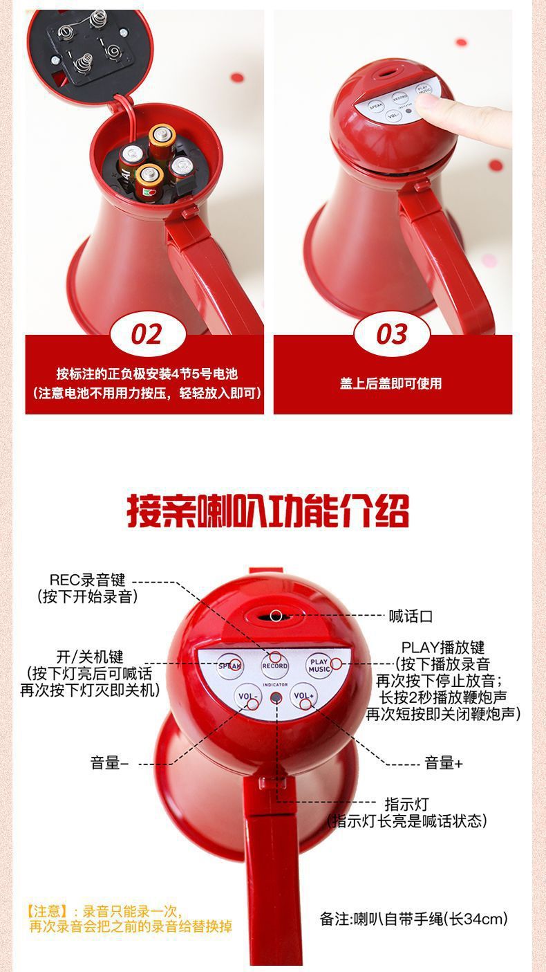 빨간 확성기 경적은 친척들에게 인사하고 문, 게임 소품, 신랑의 대화 형 사진 트릭을 차단합니다.스토어 가기