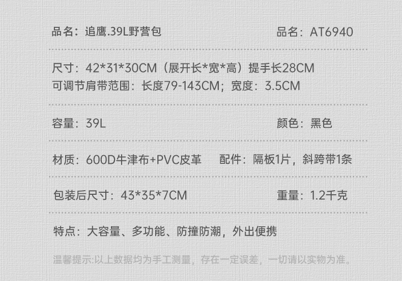 Features: Large capacity, multifunctional, anti-collision and moisture-proof, portable for outdoor use