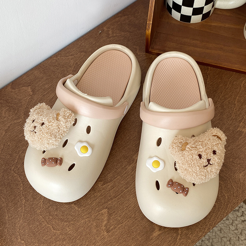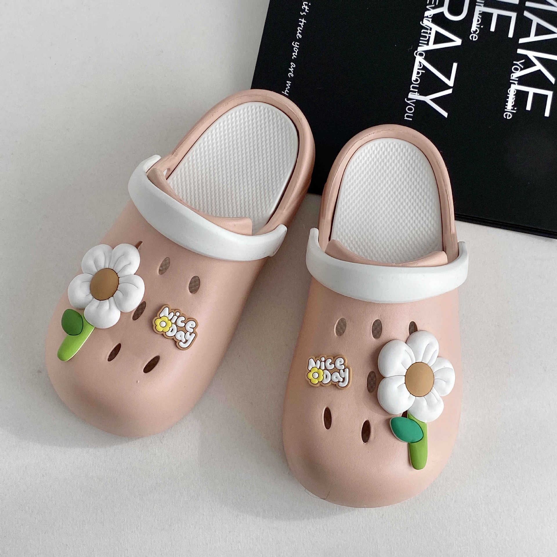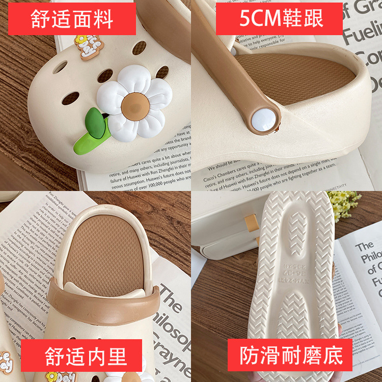 24 년 봄과 여름 새로운 작은 두꺼운 밑창 고층 슬리퍼 똥 느낌 구멍 신발 미끄럼 탈취제 귀여운 샌들
