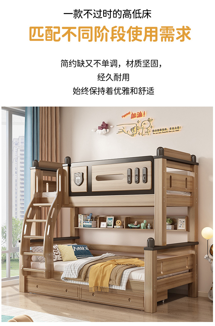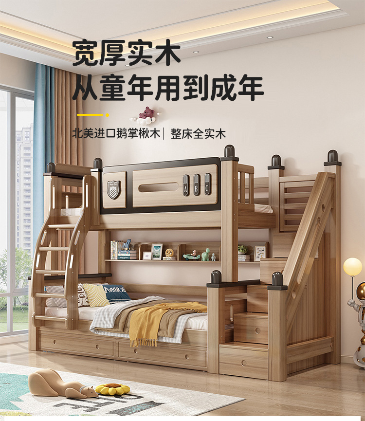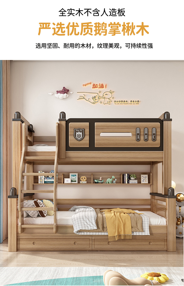 원목 이층침대, 목재 왁스 오일 처리된 이층침대, 소형 가정용 이층침대, 어린이 침대, 높낮이 조절 가능한 침대, 어린이 방용스토어 가기
