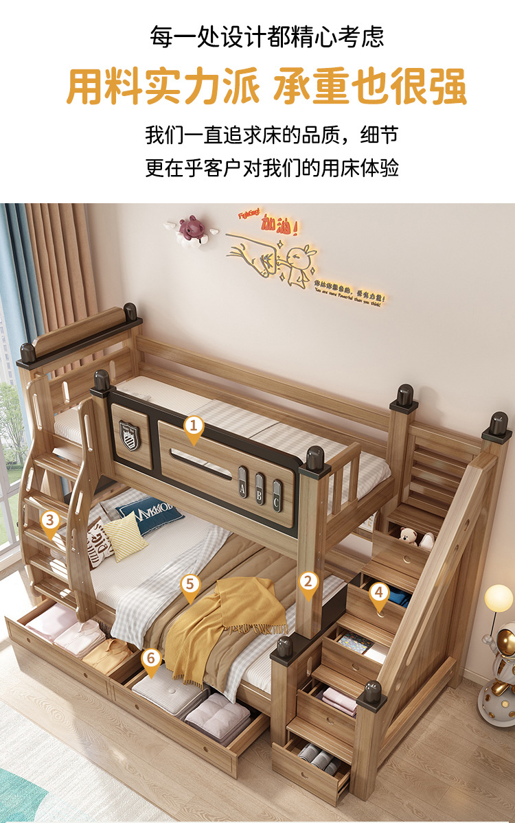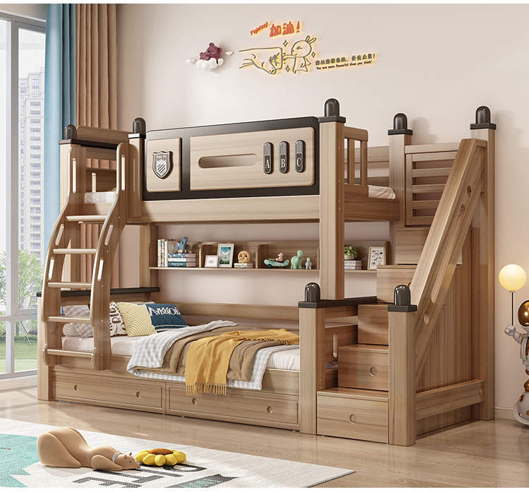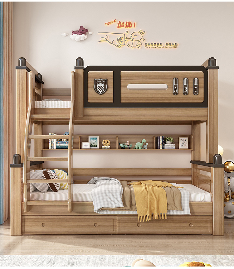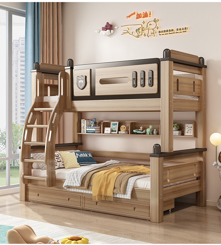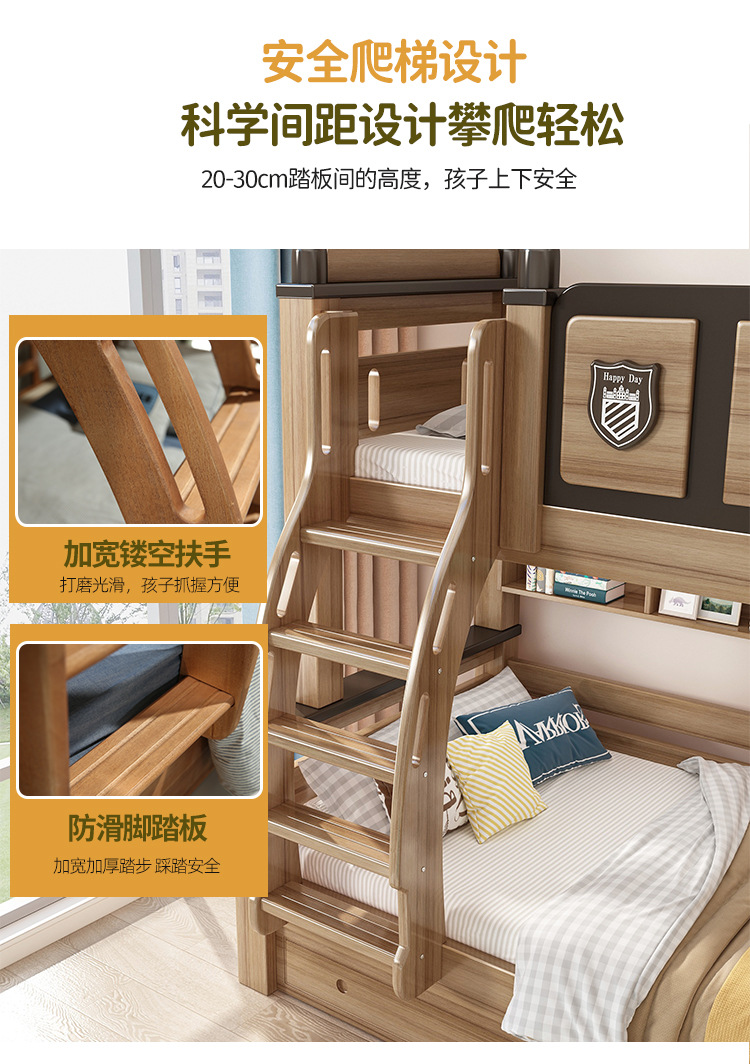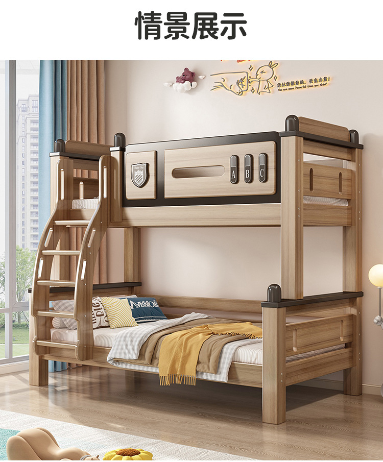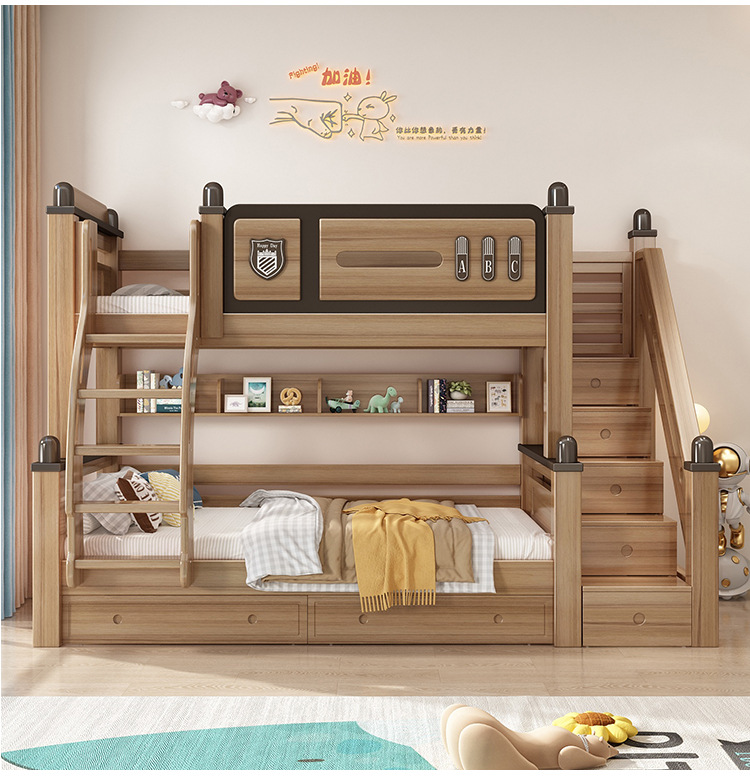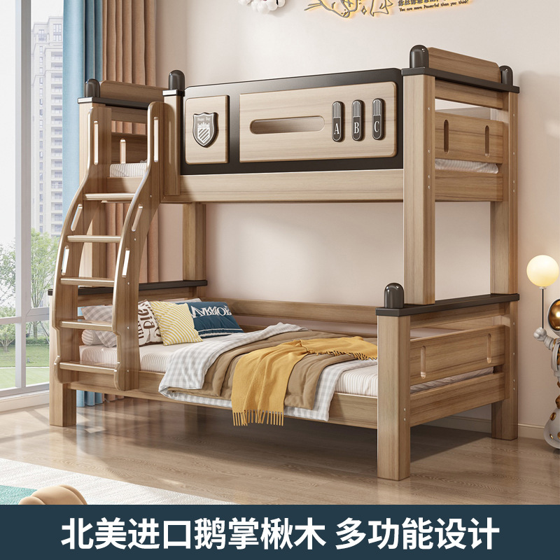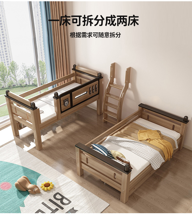 원목 이층침대, 목재 왁스 오일 처리된 이층침대, 소형 가정용 이층침대, 어린이 침대, 높낮이 조절 가능한 침대, 어린이 방용