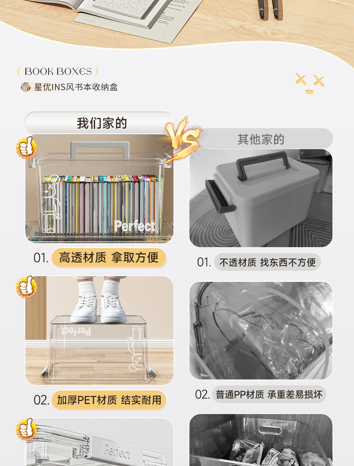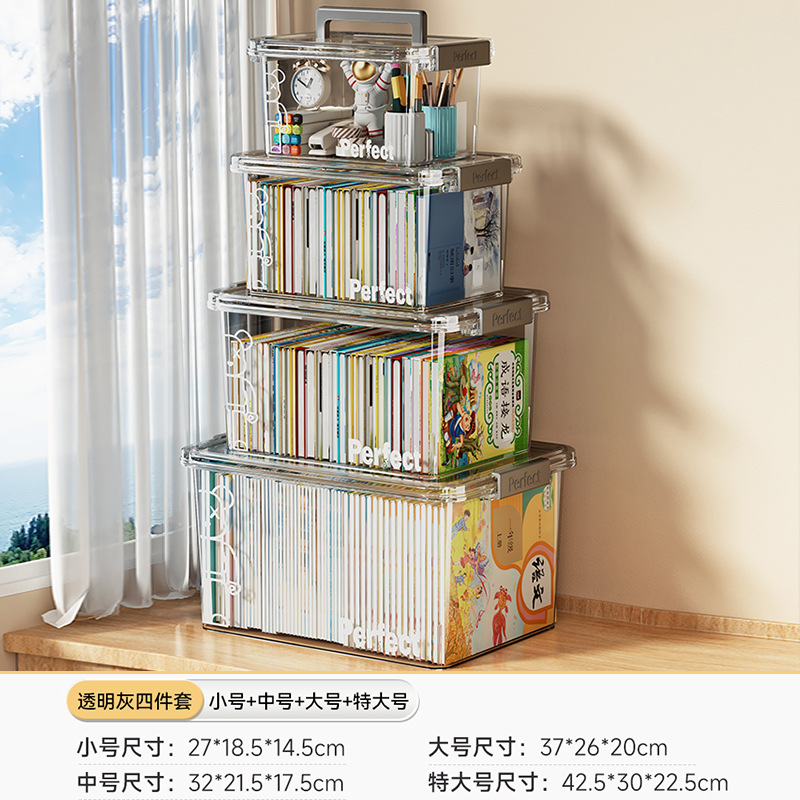 저장 상자 책 상자 학생 교실 책 보관 대용량 투명 상자 책 저장 상자 저장 상자