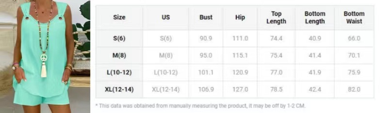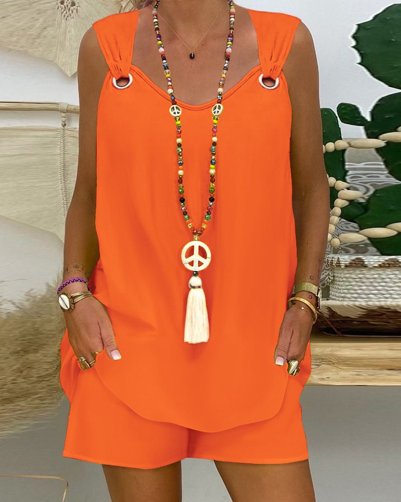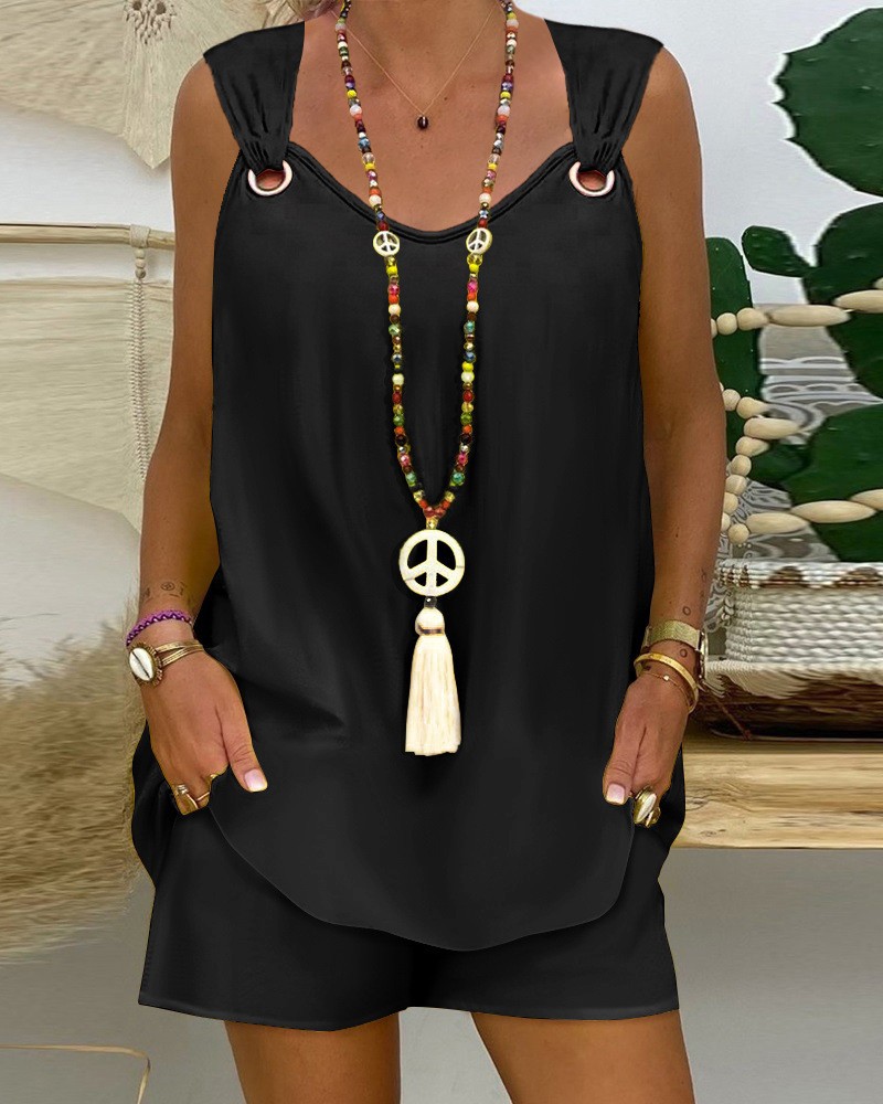 2024 국경 유럽과 미국 여성의 우아한 우아한 단색 민소매 캐주얼 탑 반바지 세트스토어 가기