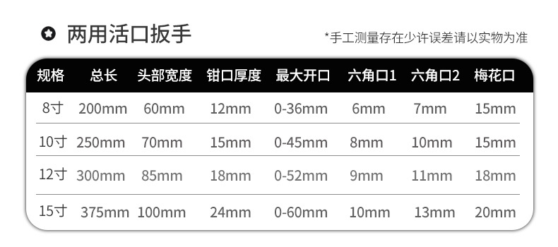 대형 개방 조절 가능한 다기능 범용 렌치의 가정용 배관 범용 렌치 풀 세트스토어 가기