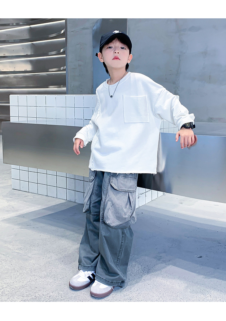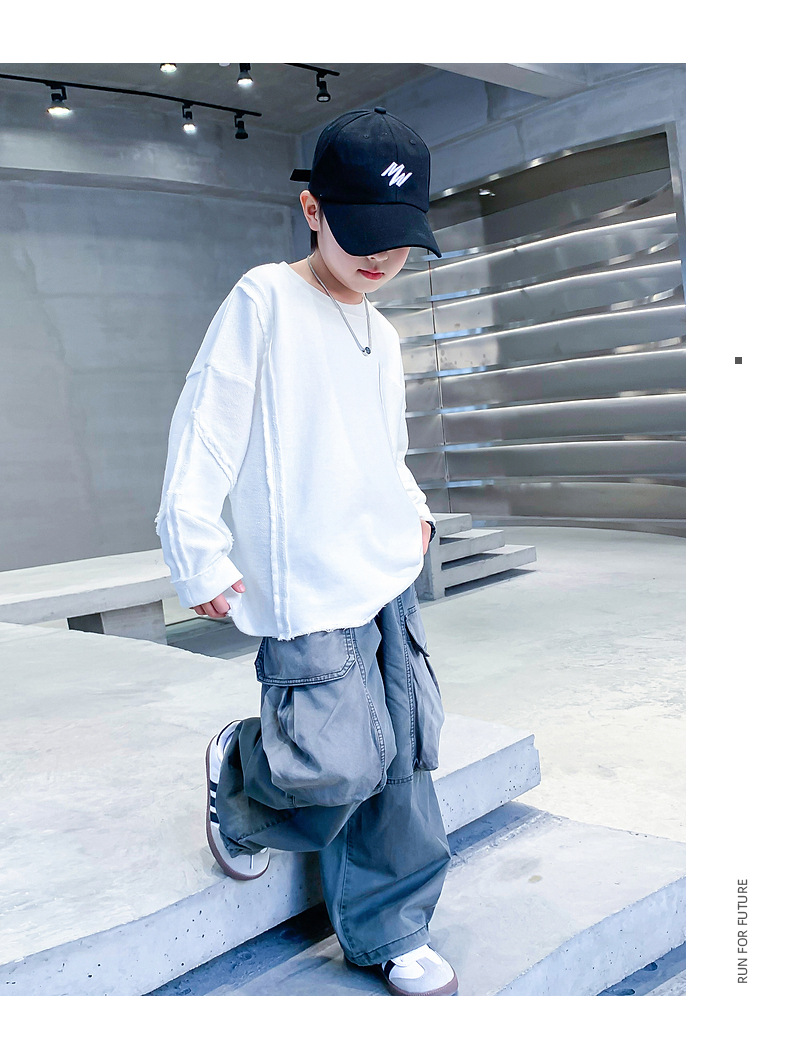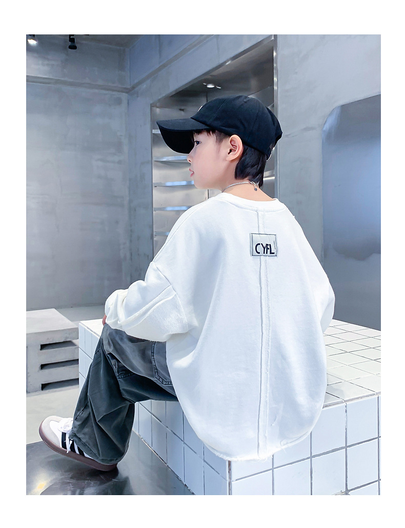 소년 봄, 가을 흰색 긴팔 느슨한 티셔츠 2025 새로운 스타일 어린이 소년 초가을 옷 잘 생긴 바닥 탑스토어 가기