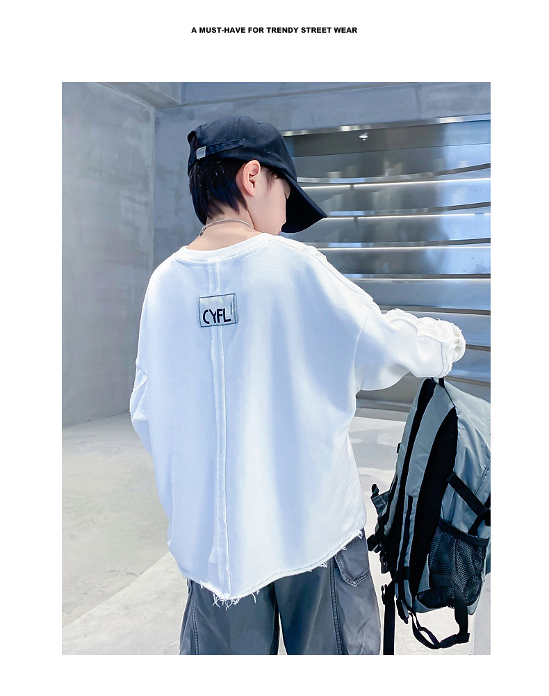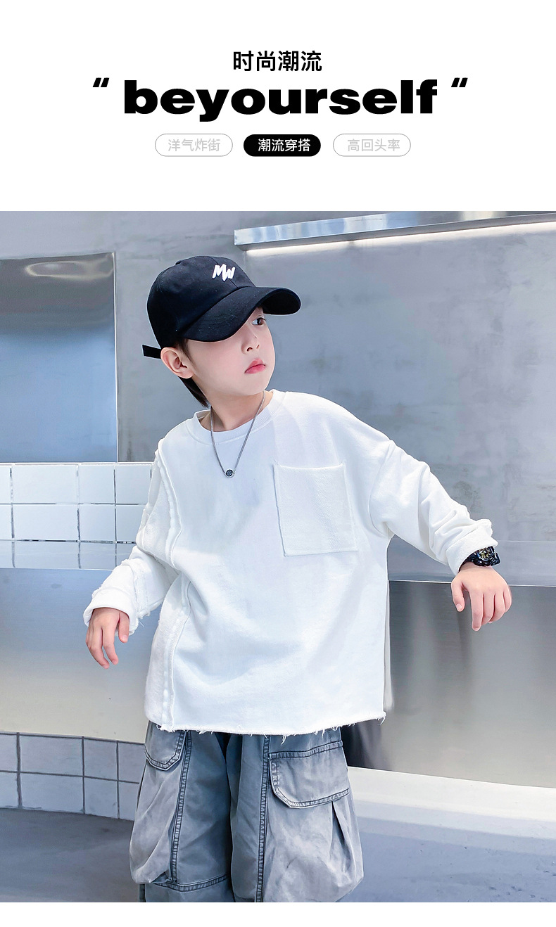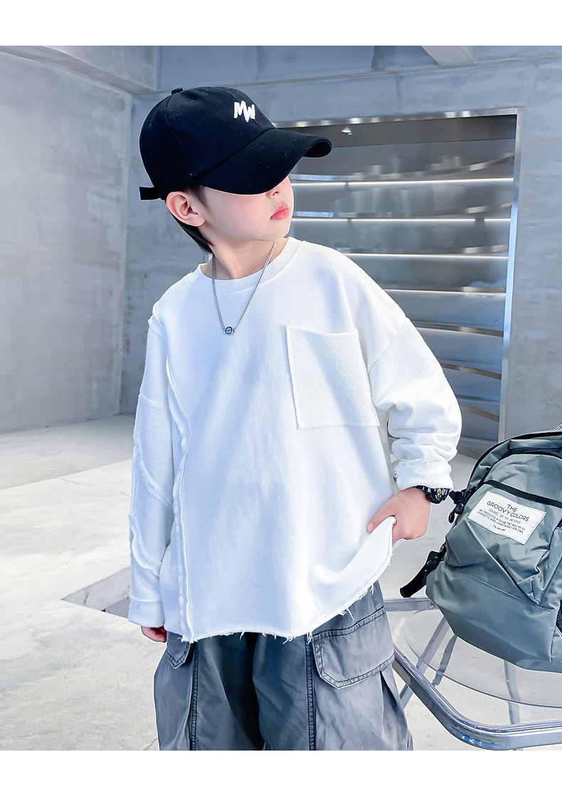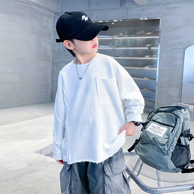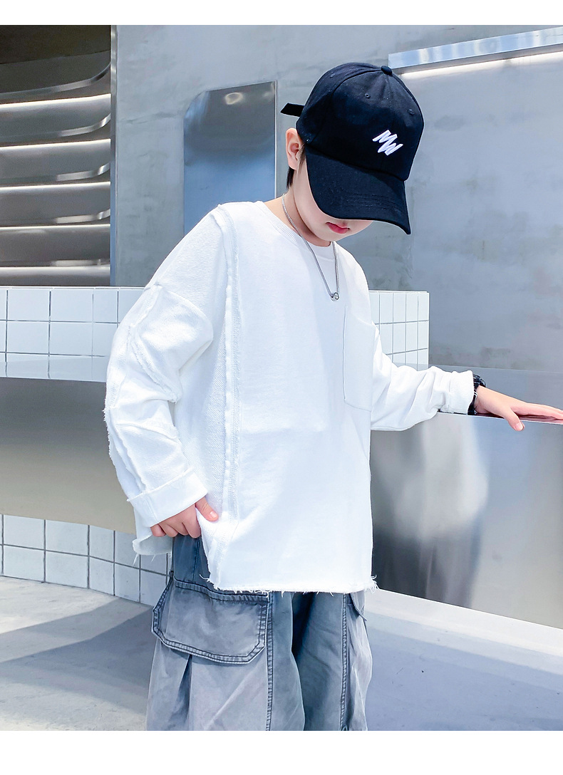 소년 봄, 가을 흰색 긴팔 느슨한 티셔츠 2025 새로운 스타일 어린이 소년 초가을 옷 잘 생긴 바닥 탑