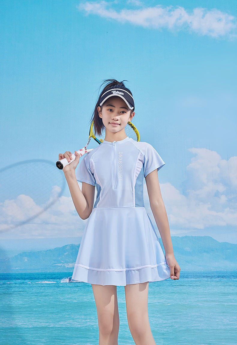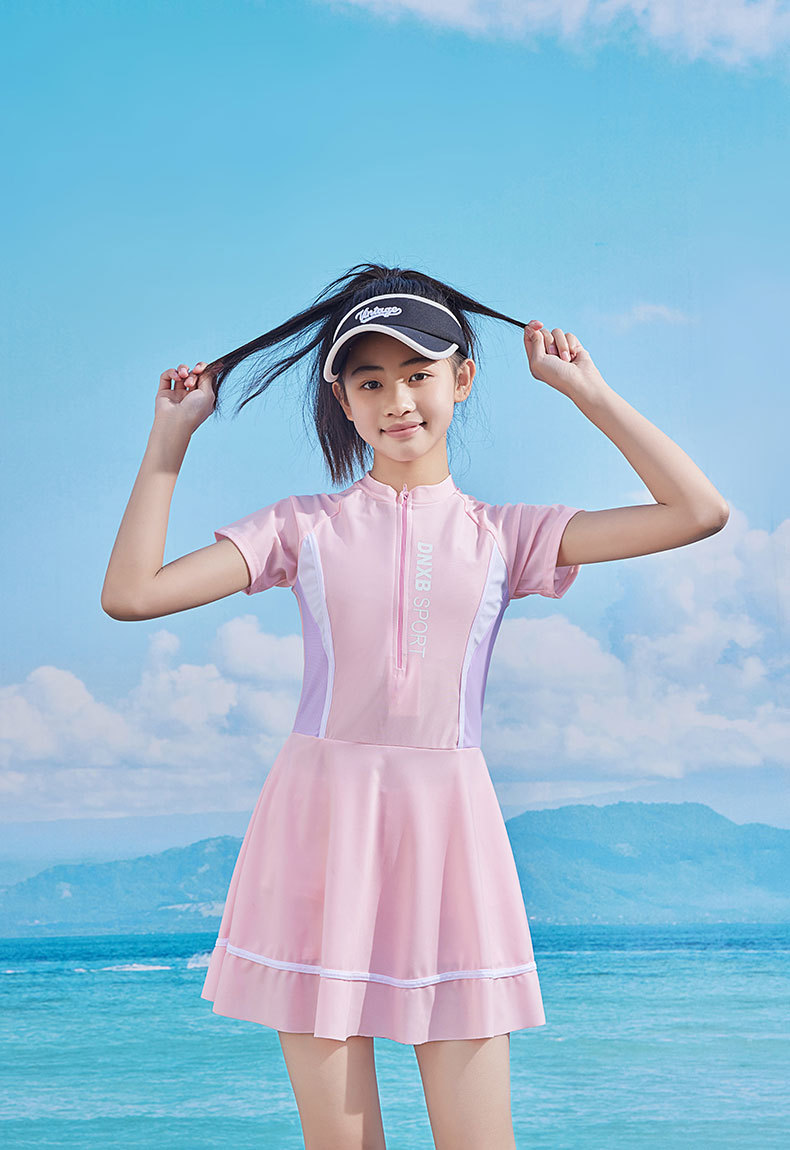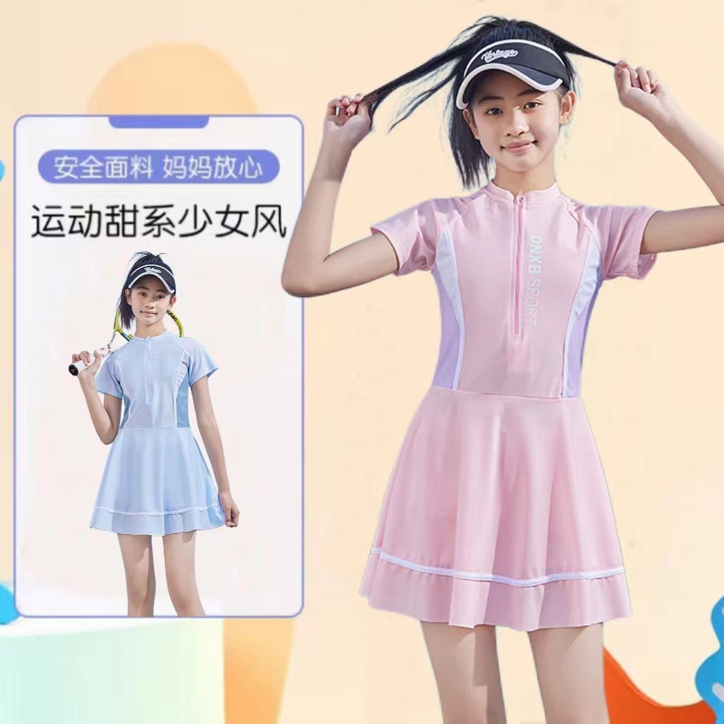 어린이 수영복 2024 새로운 여자 여름 스포츠 가슴 패드와 빠른 건조 수영복 큰 키즈 전문 스커트 수영복스토어 가기