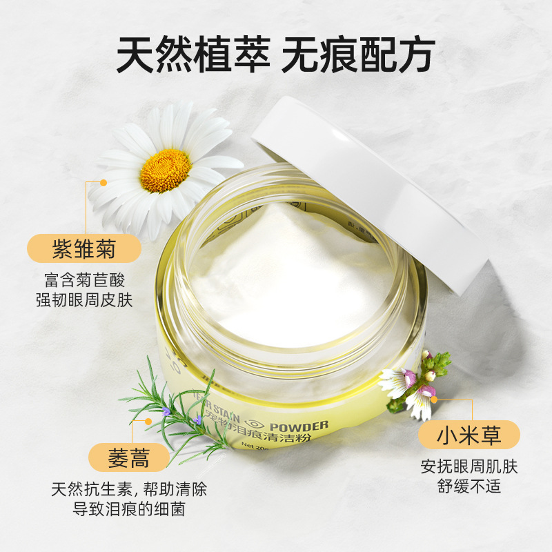 세븐 오 애완 동물 눈물 얼룩 분말 외부 눈 청소 고양이 개 눈물 얼룩 제거 분말 유물 제조 업체 도매스토어 가기