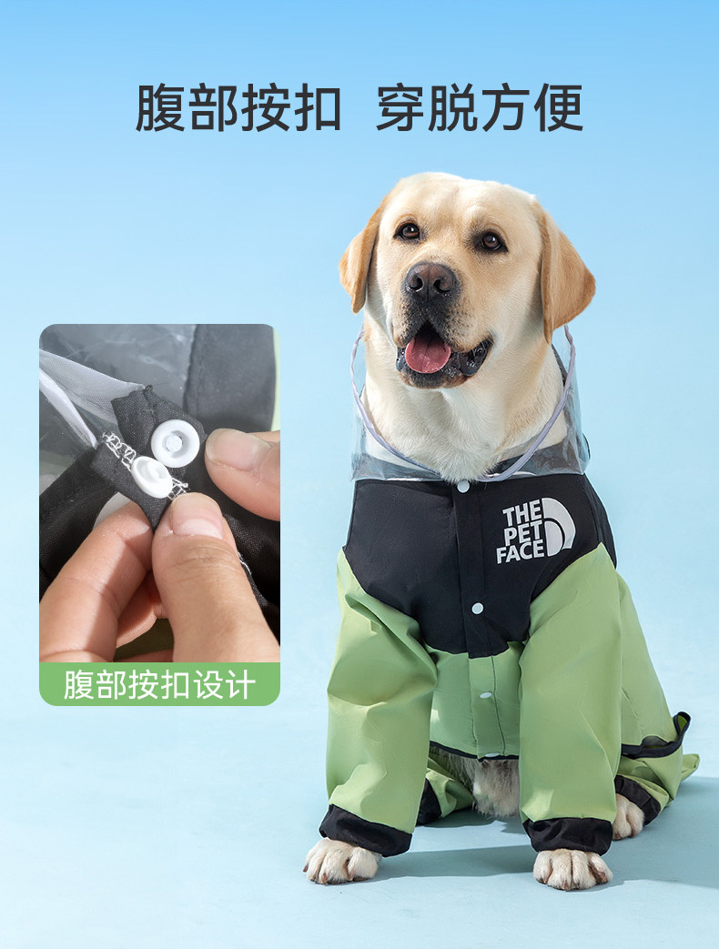 국경 간 대외 무역 개 패션 스티칭 골든 리트리버 큰 개 비옷 중형 및 대형 개 4 다리 올 인 클루 시브 방수 애완 동물 판초