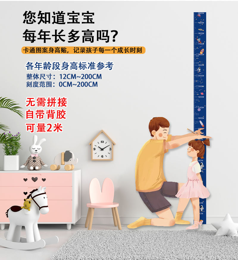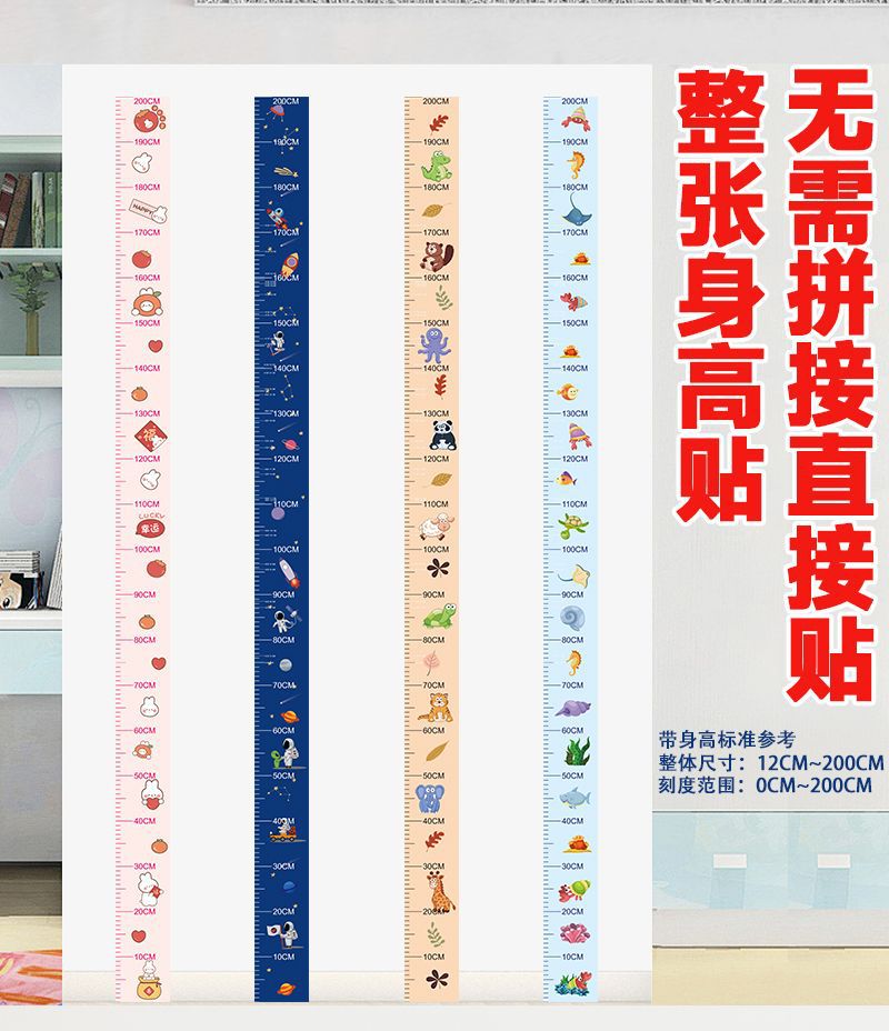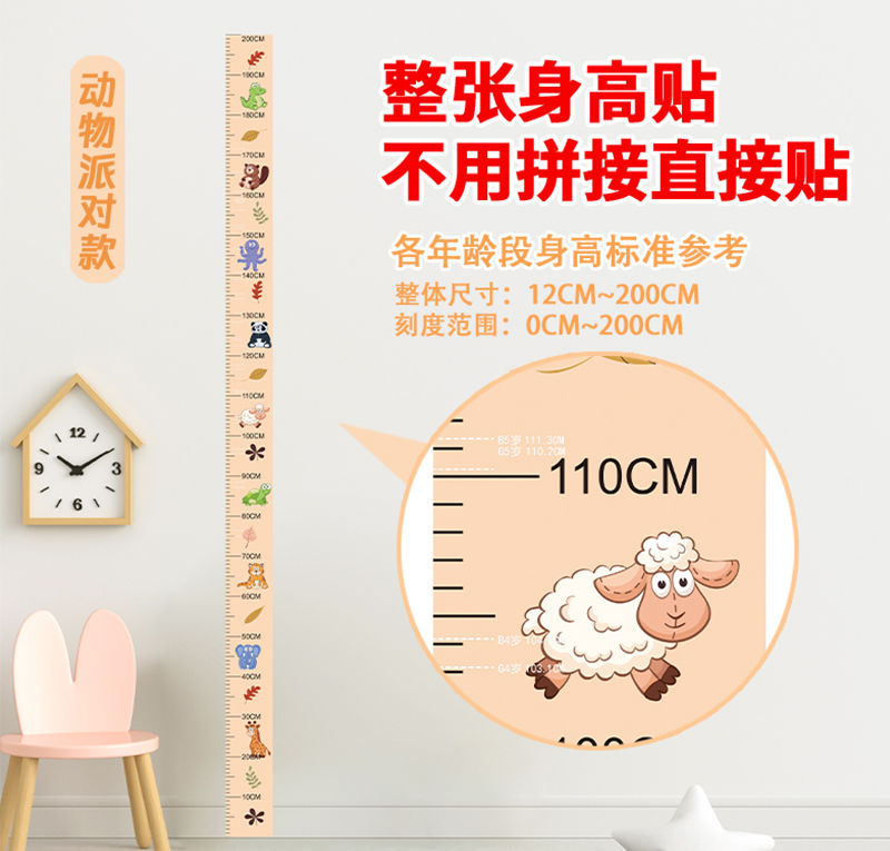 만화 어린이 높은 스티커 측정 벽 스티커는 정확한 높은 통치자 동물 아기 가구 전체 스티커를 치지 않습니다스토어 가기