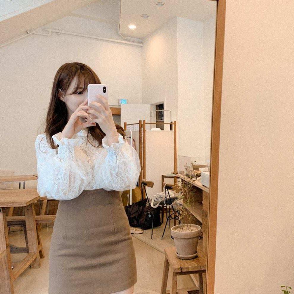 한국 스타일 슈퍼 페어리 스타일리스트 내부 버블 슬리브 레이스 셔츠 여성용 긴 소매 봄과 가을 랜턴 슬리브 메쉬 베이스 셔츠 탑스토어 가기